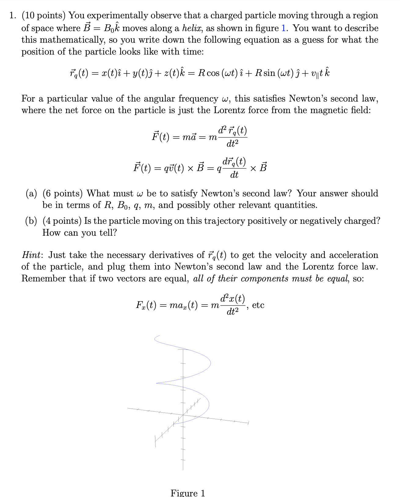 1. (10 points) You experimentally observe that a charged particle m...