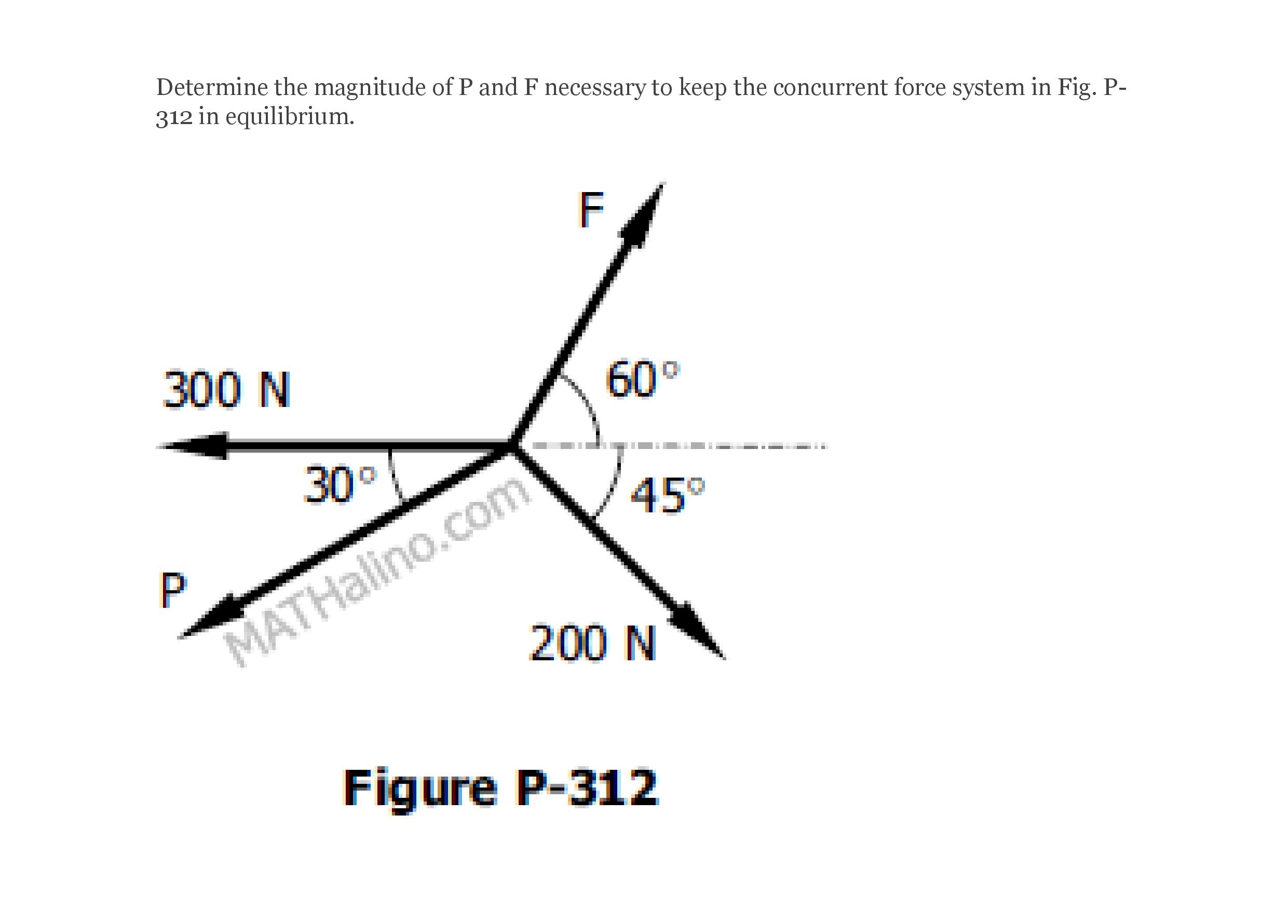 Determine the magnitude of P and F necessary to keep the concurrent...