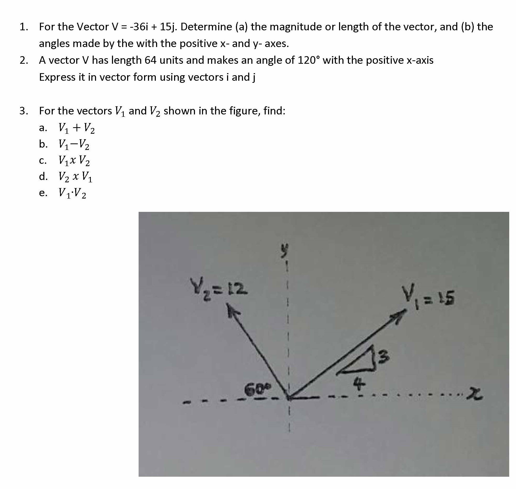 1. For the Vector V -36i 15j. Determine (a) the magnitude or length...