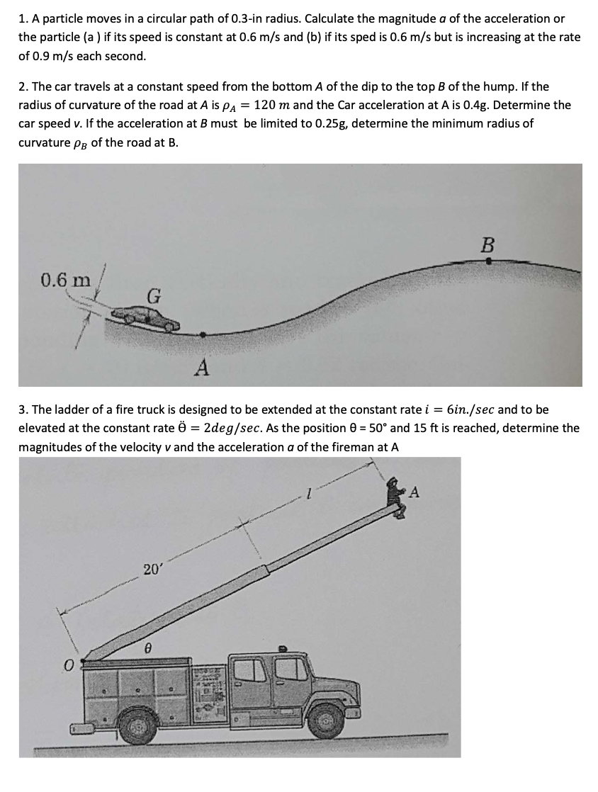 1. A particle moves in a circular path of 0.3-in radius. Calculate ...