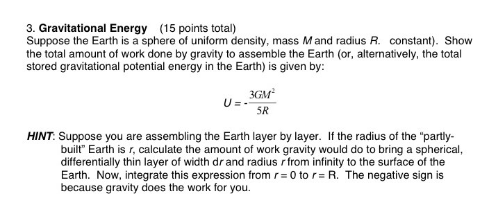 3. Gravitational Energy (15 points total) Suppose the Earth is a ...