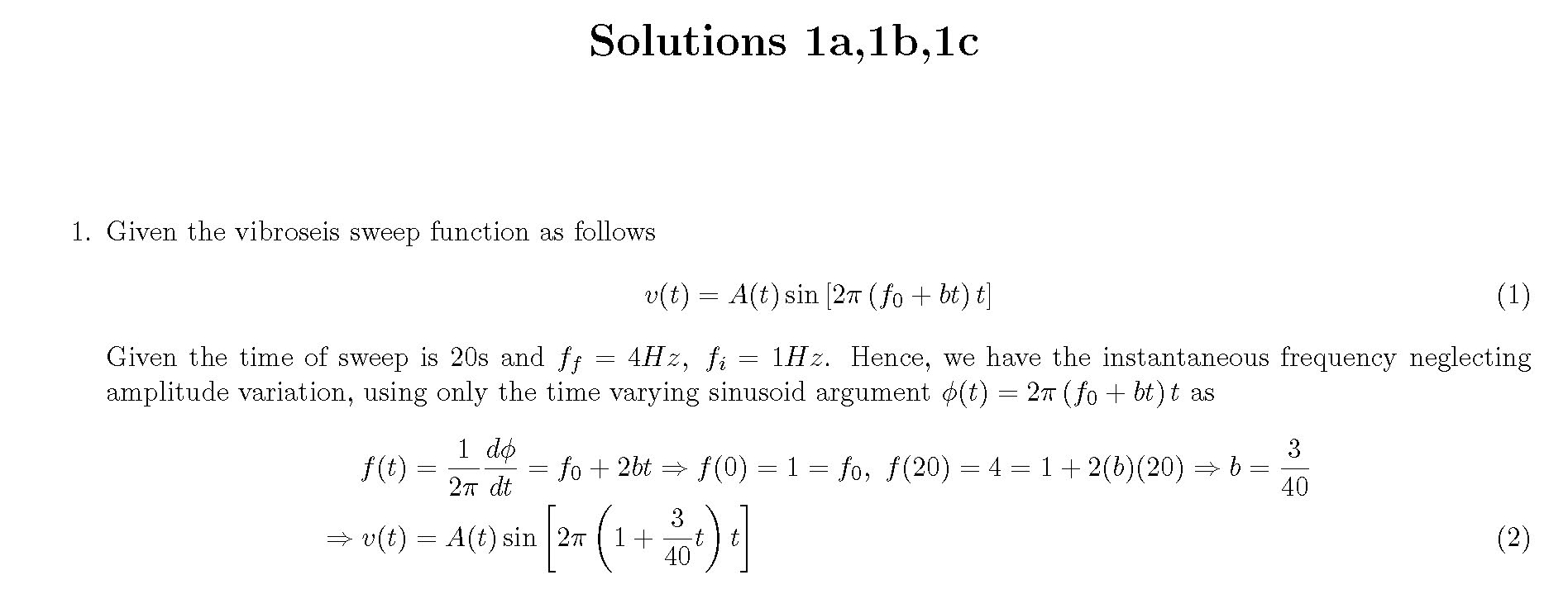 1. (COMPUTER) Recall equation (7.17) for the vibroseis sweep functi...