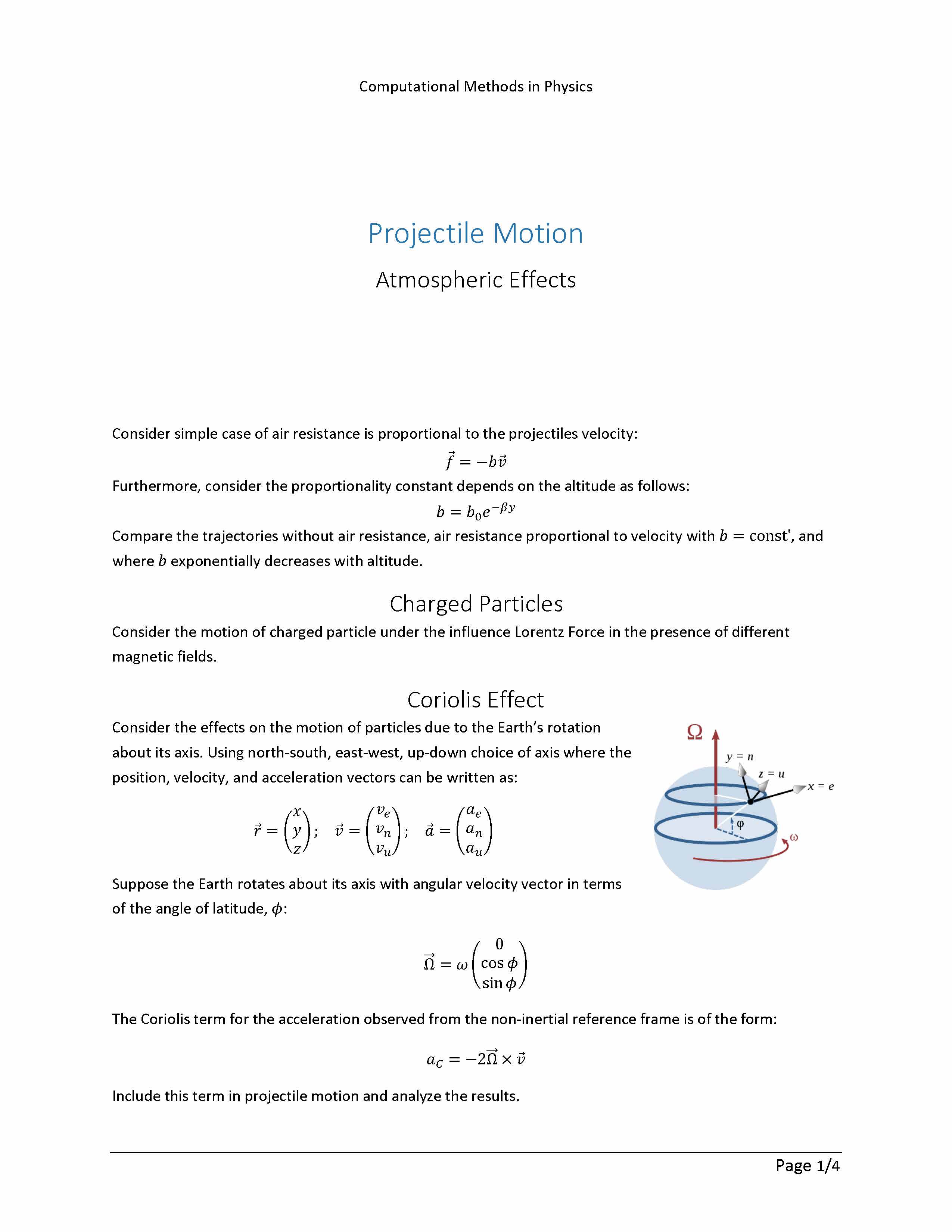 Computation Projectile Motion Atmospheric Effects Consider simpl...