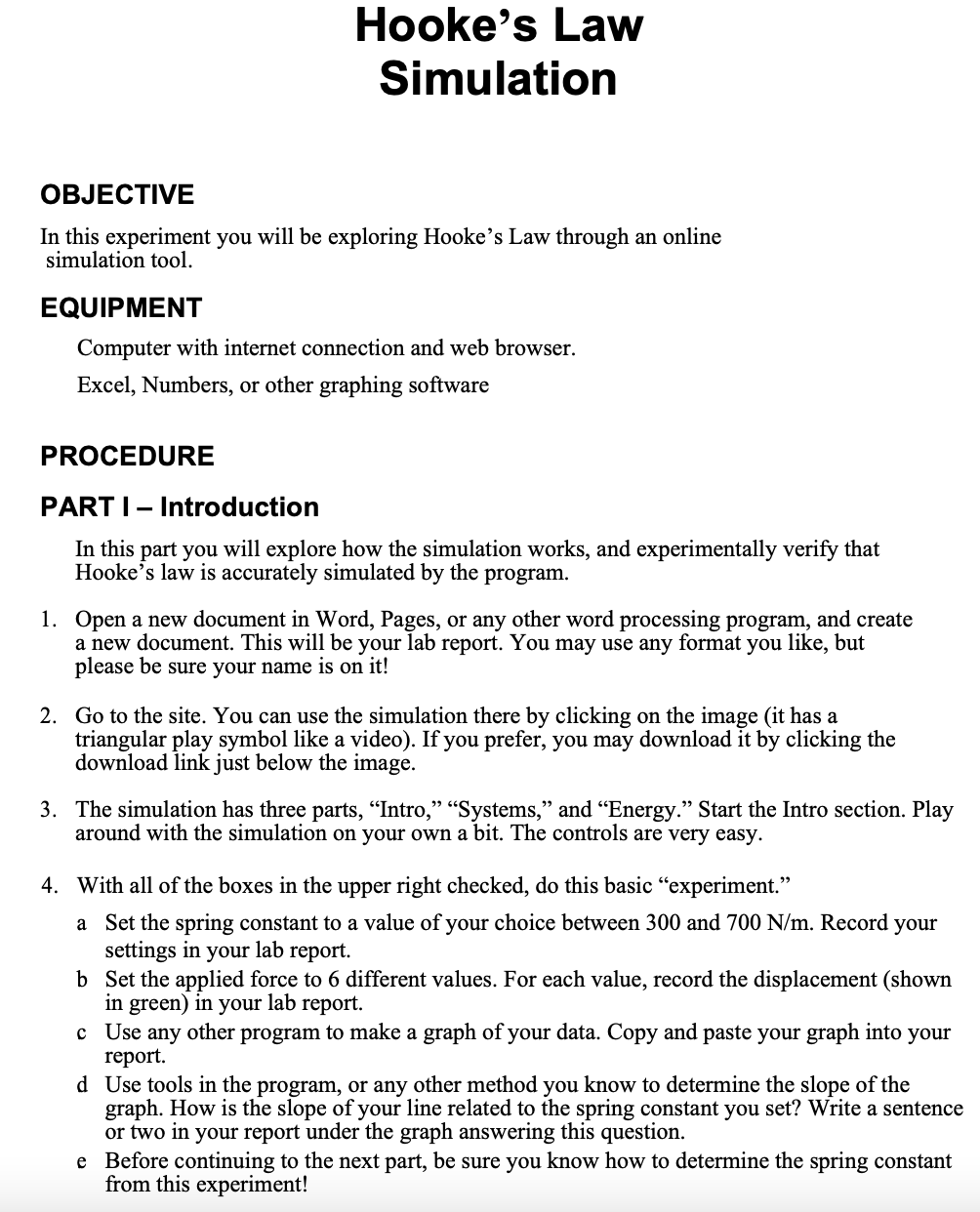 Hooke's Law Simulation OBJECTIVE In this experiment you will be...