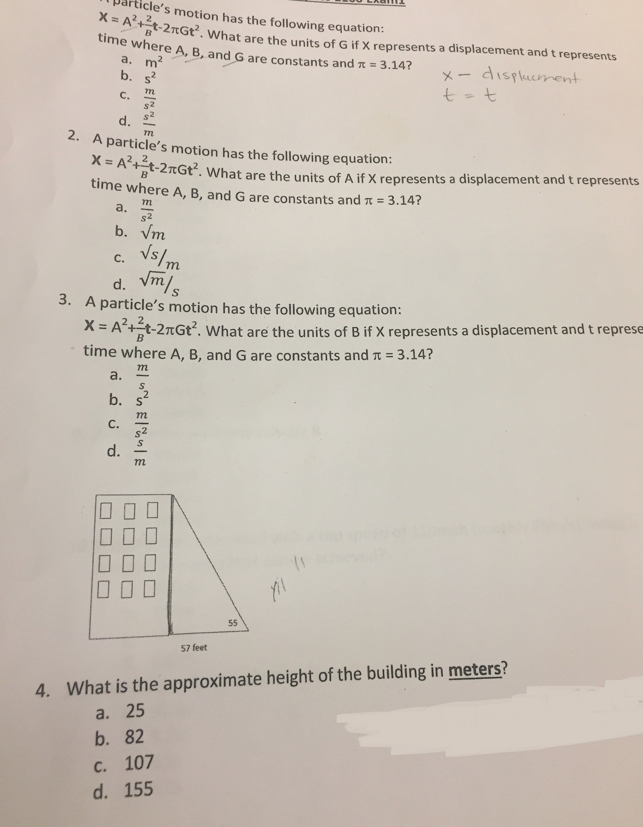1. x A II particle's motion has the following equation: Exam1 Phys...