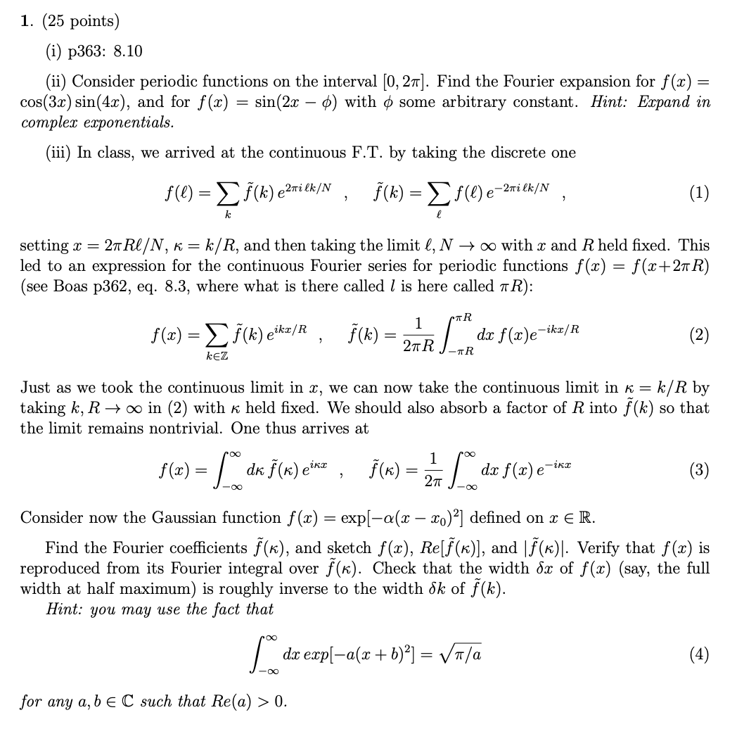 1. (25 points) (i) p363: 8.10 (ii) Consider periodic functions on...