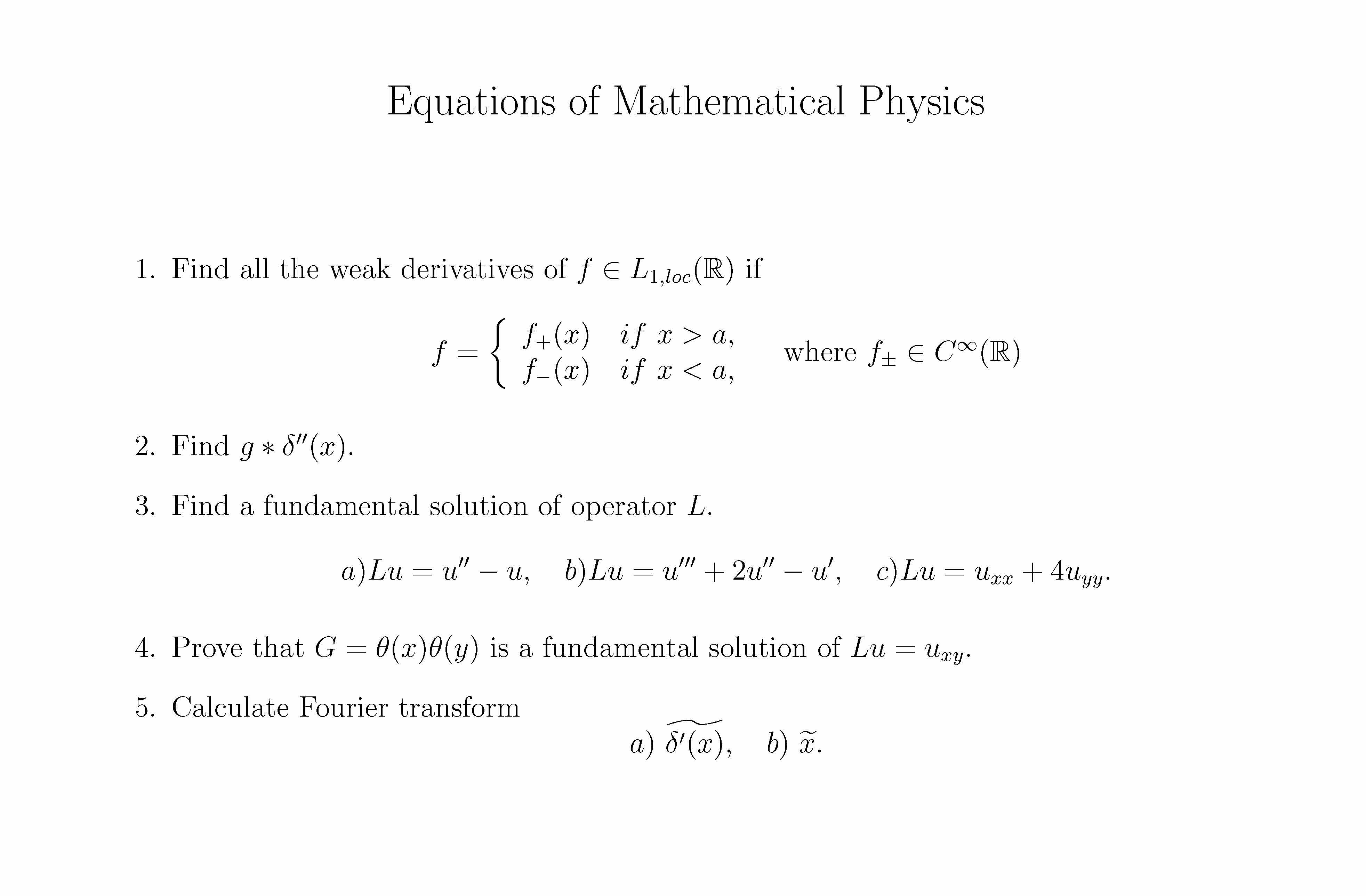 Equations of Mathematical Physics 1. Find all the weak derivatives...