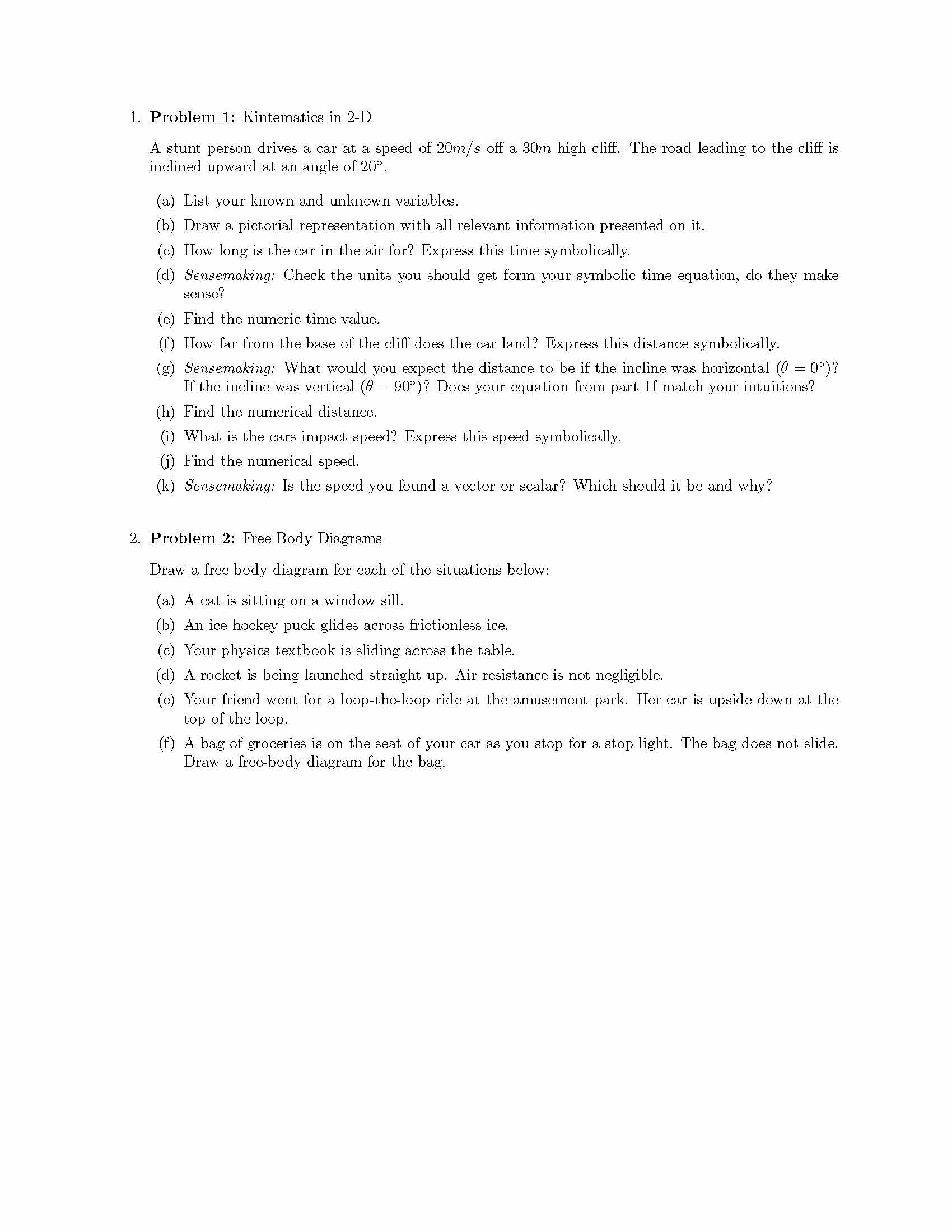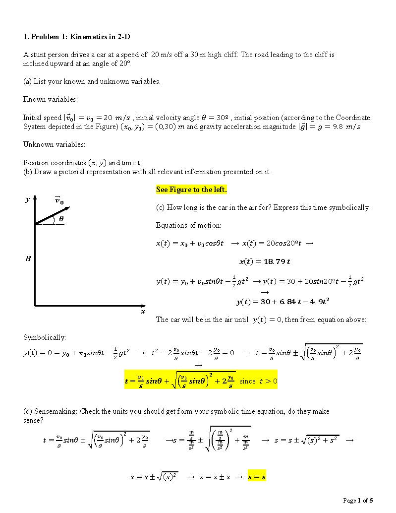 1. Problem 1: Kintematics in 2-D A stunt person drives a car at a ...