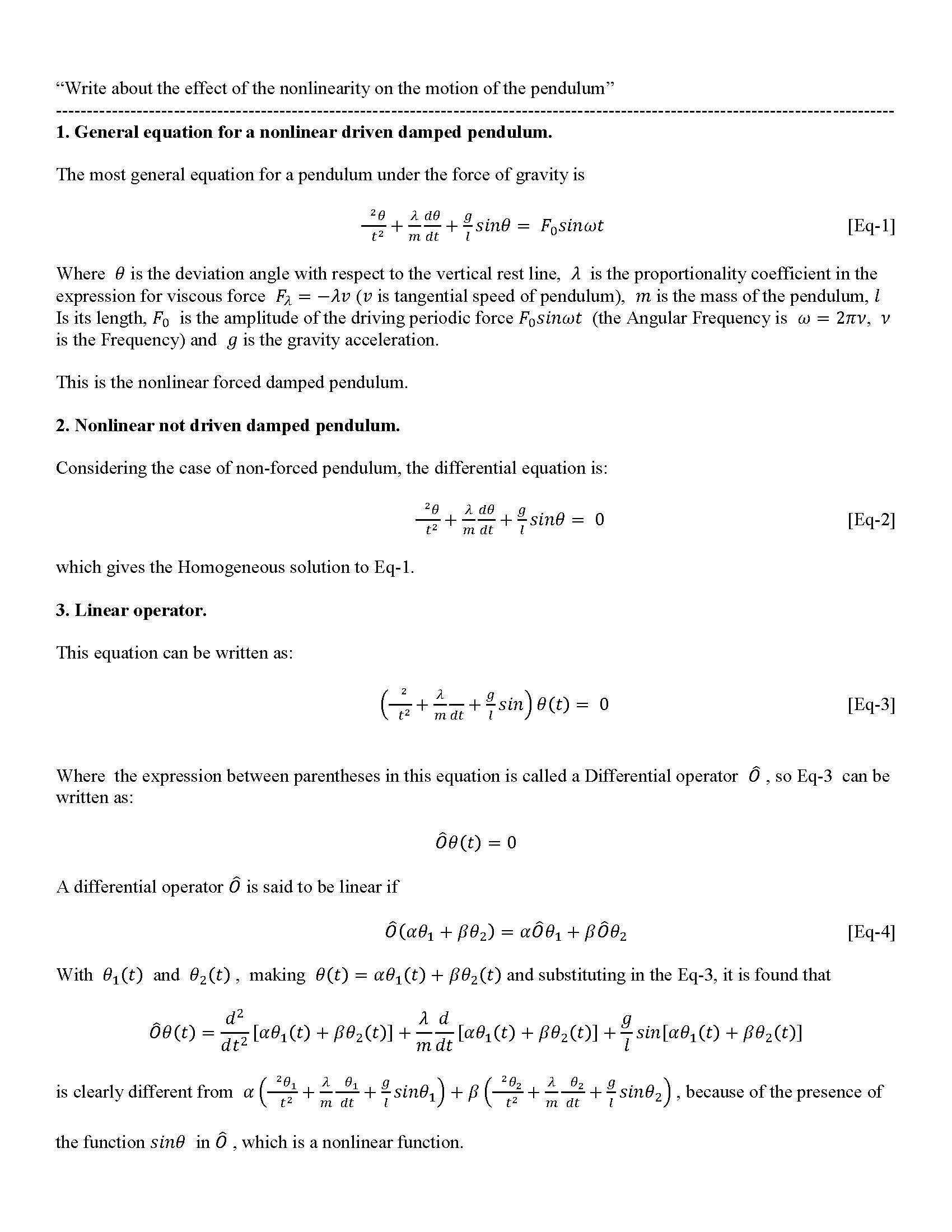 Write about the effect of the non linearity on the motion of the pe...