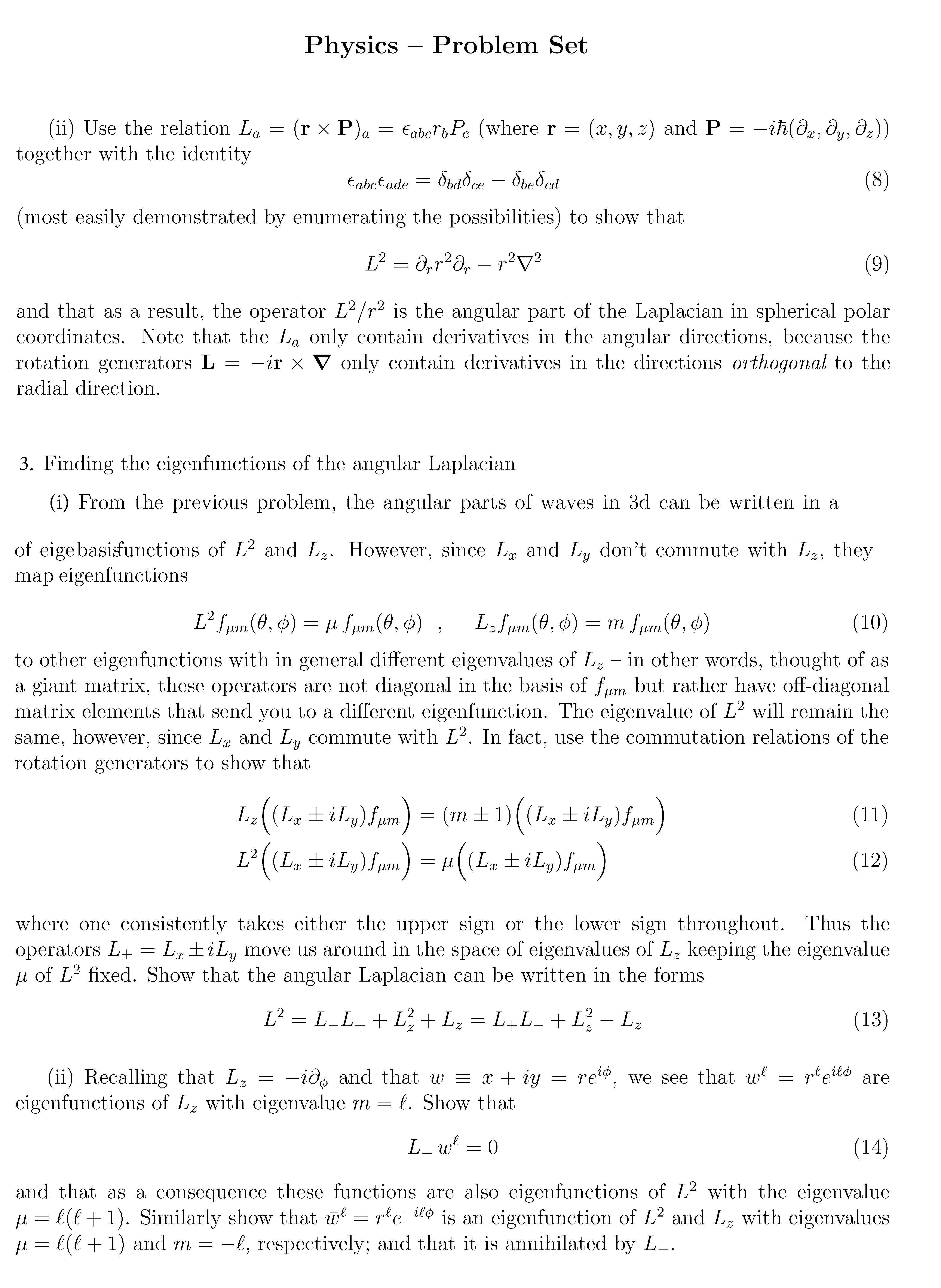 Physics – Problem Set (ii) Use the relation La = (r ⇥...