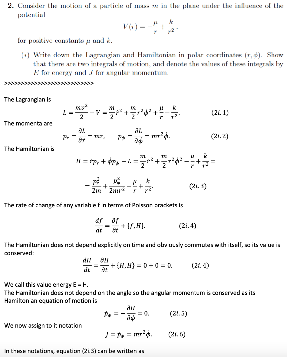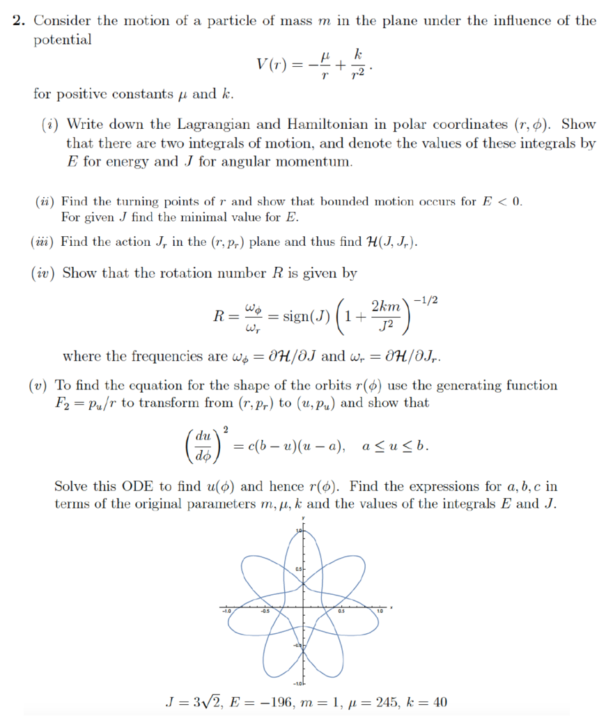 2. Consider the motion of a particle of mass m in the plane under t...