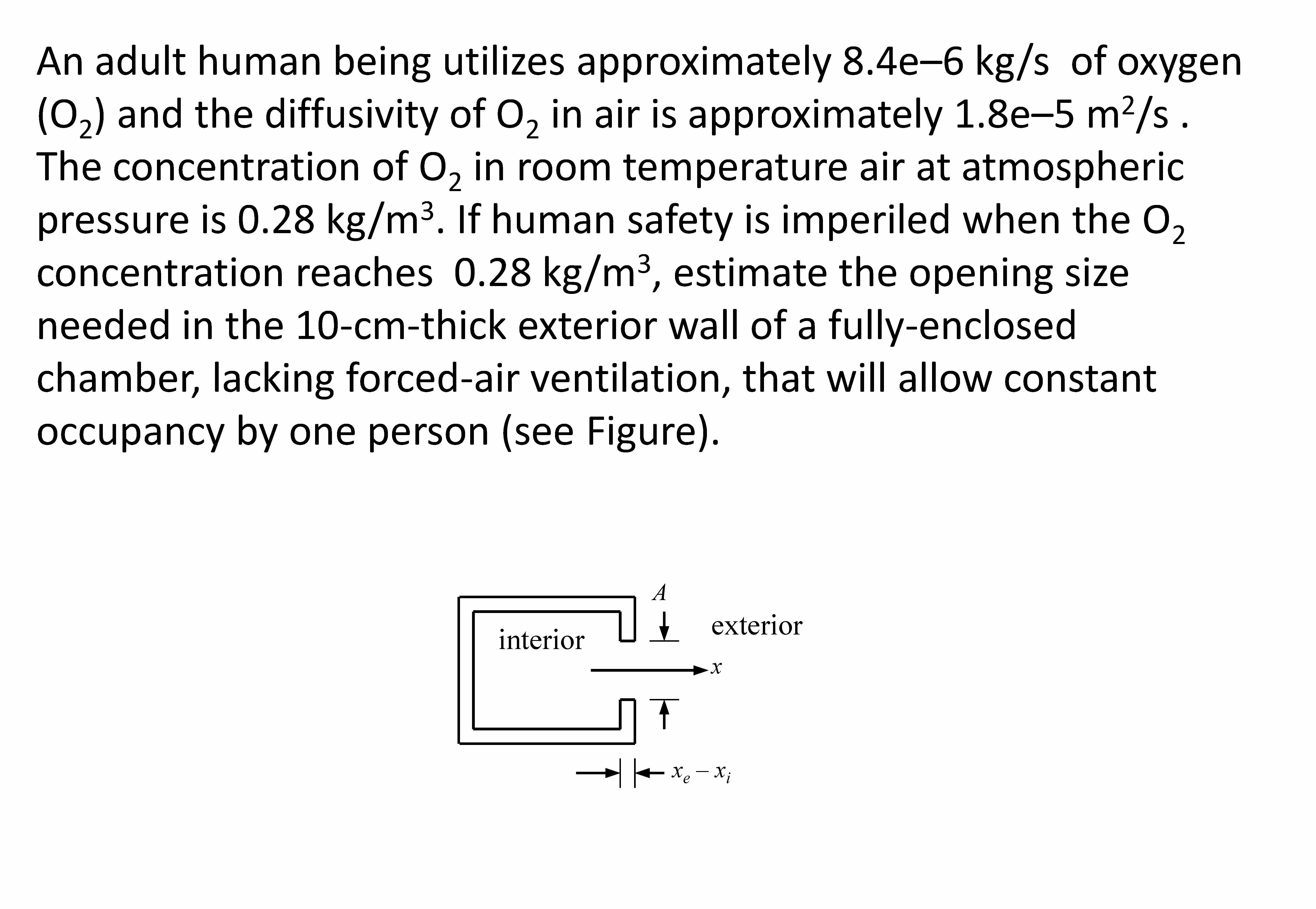 An adult human being utilizes approximately 8.4e-6 kg/s of oxygen ...