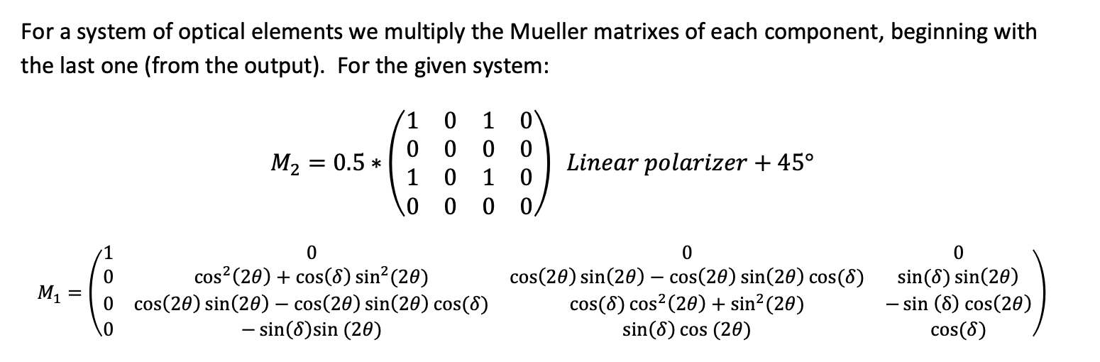 Use Mueller matrices to construct a single matrix that represents t...