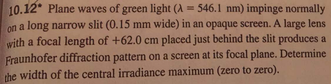 10.12* Plane waves of green light (A = 546.1 nm) impinge normally...