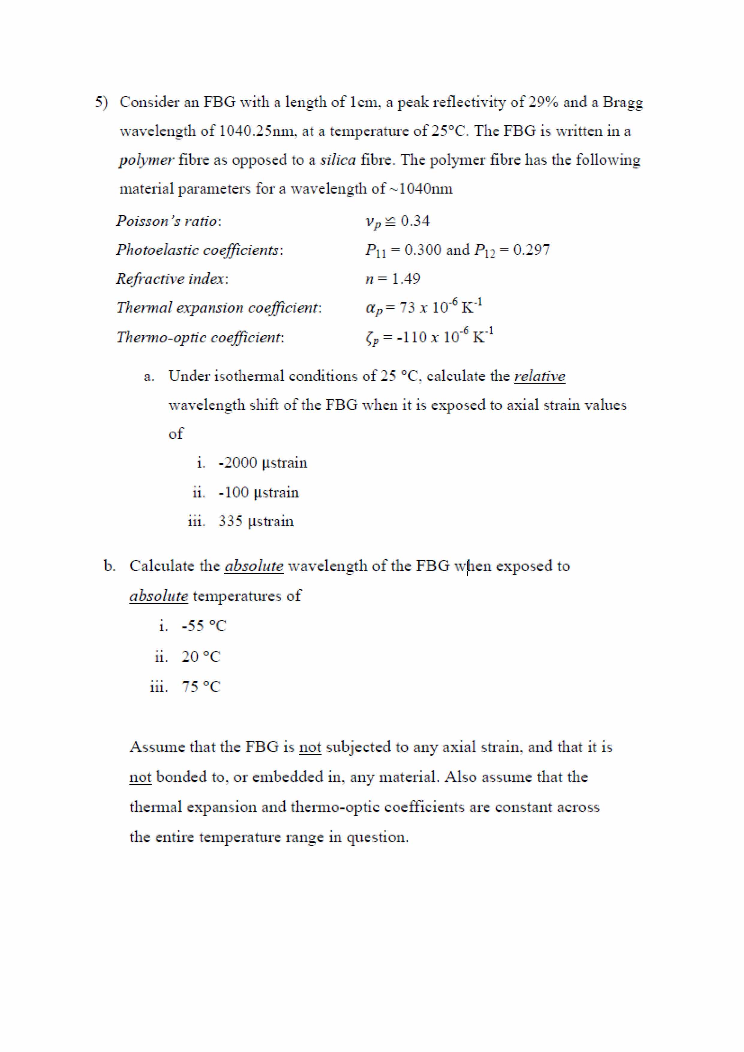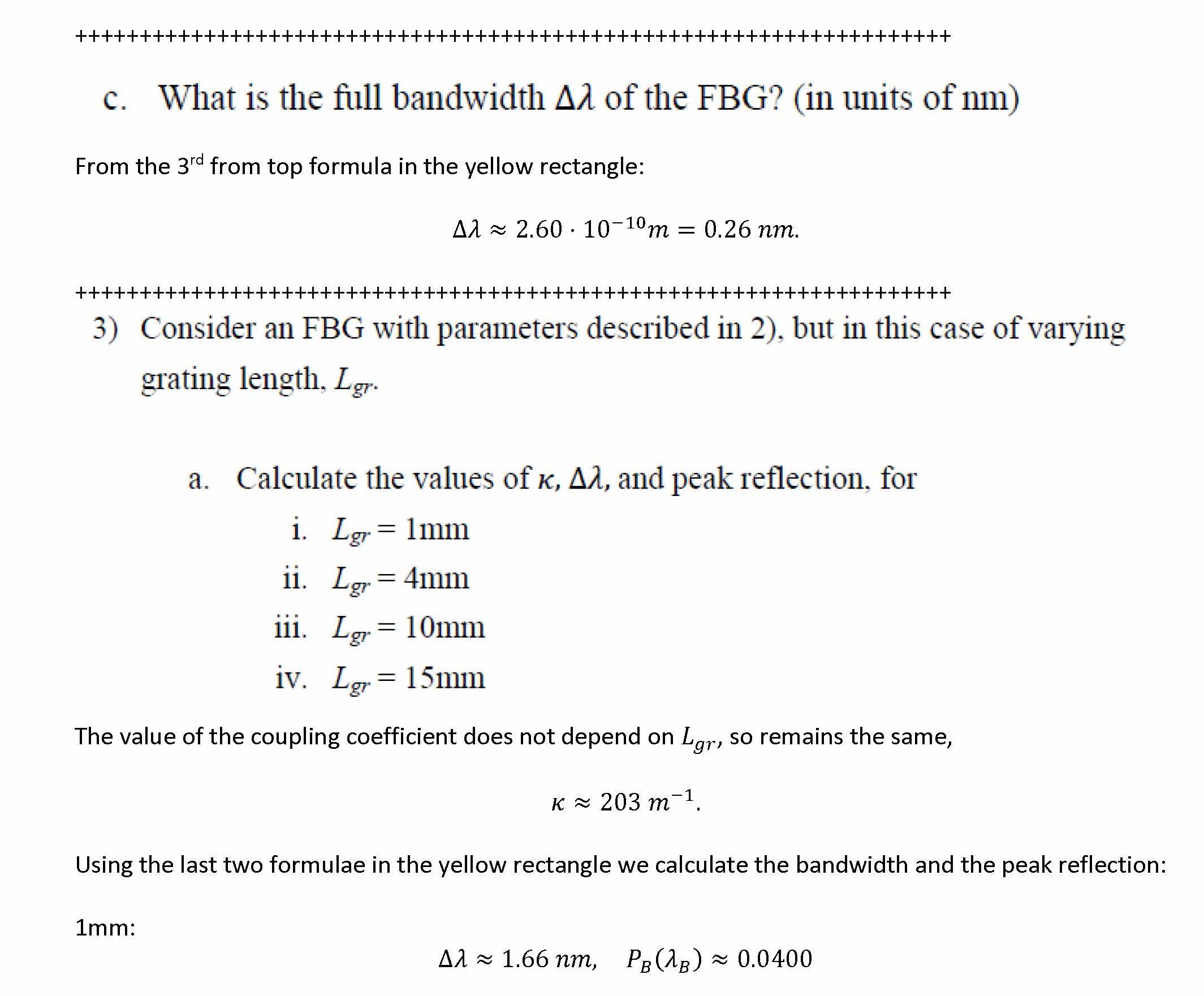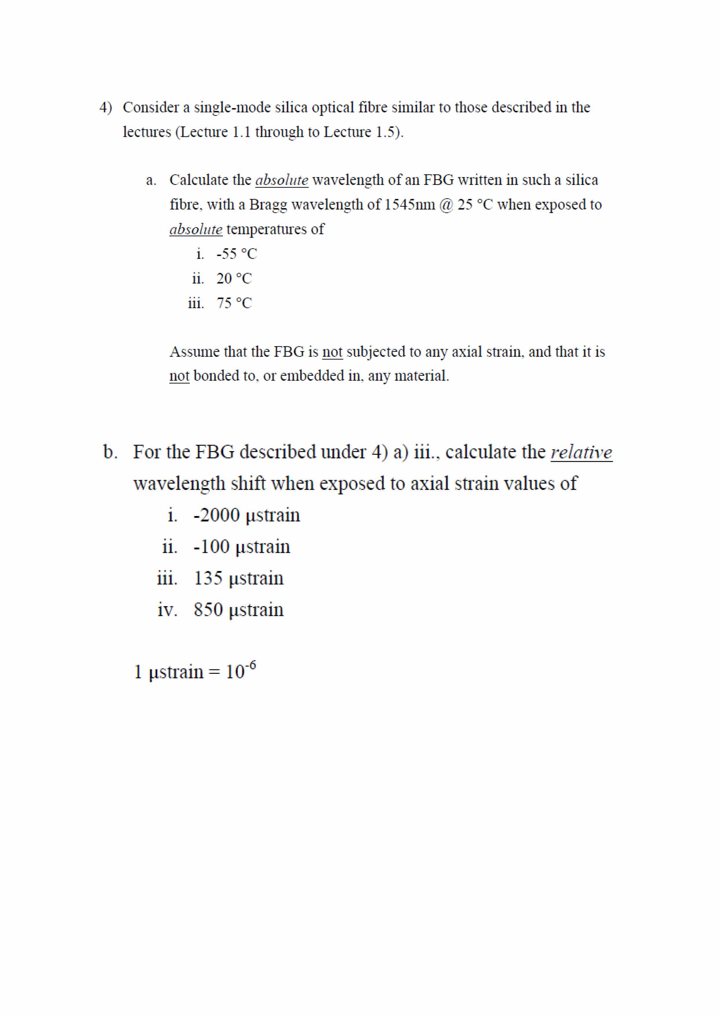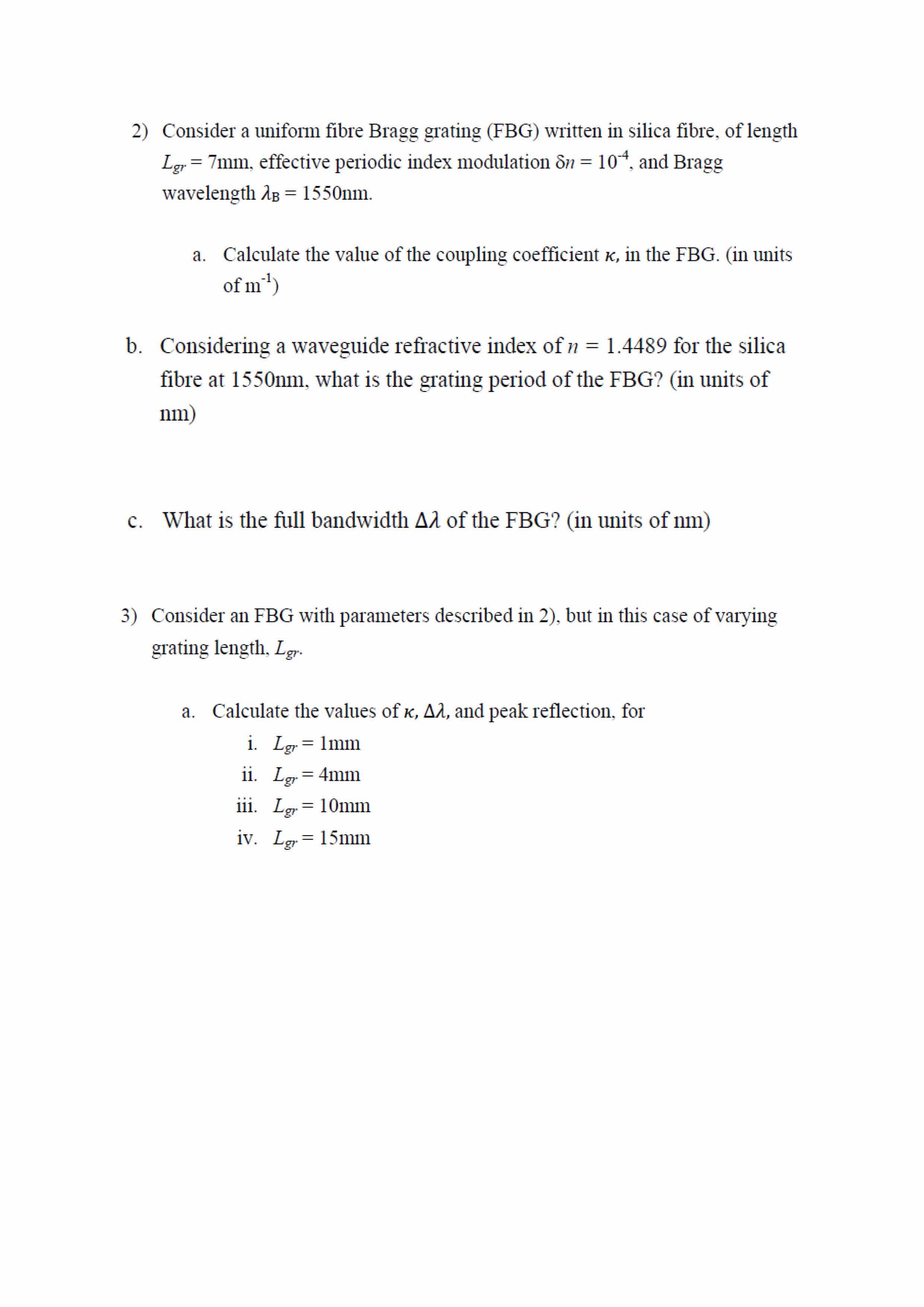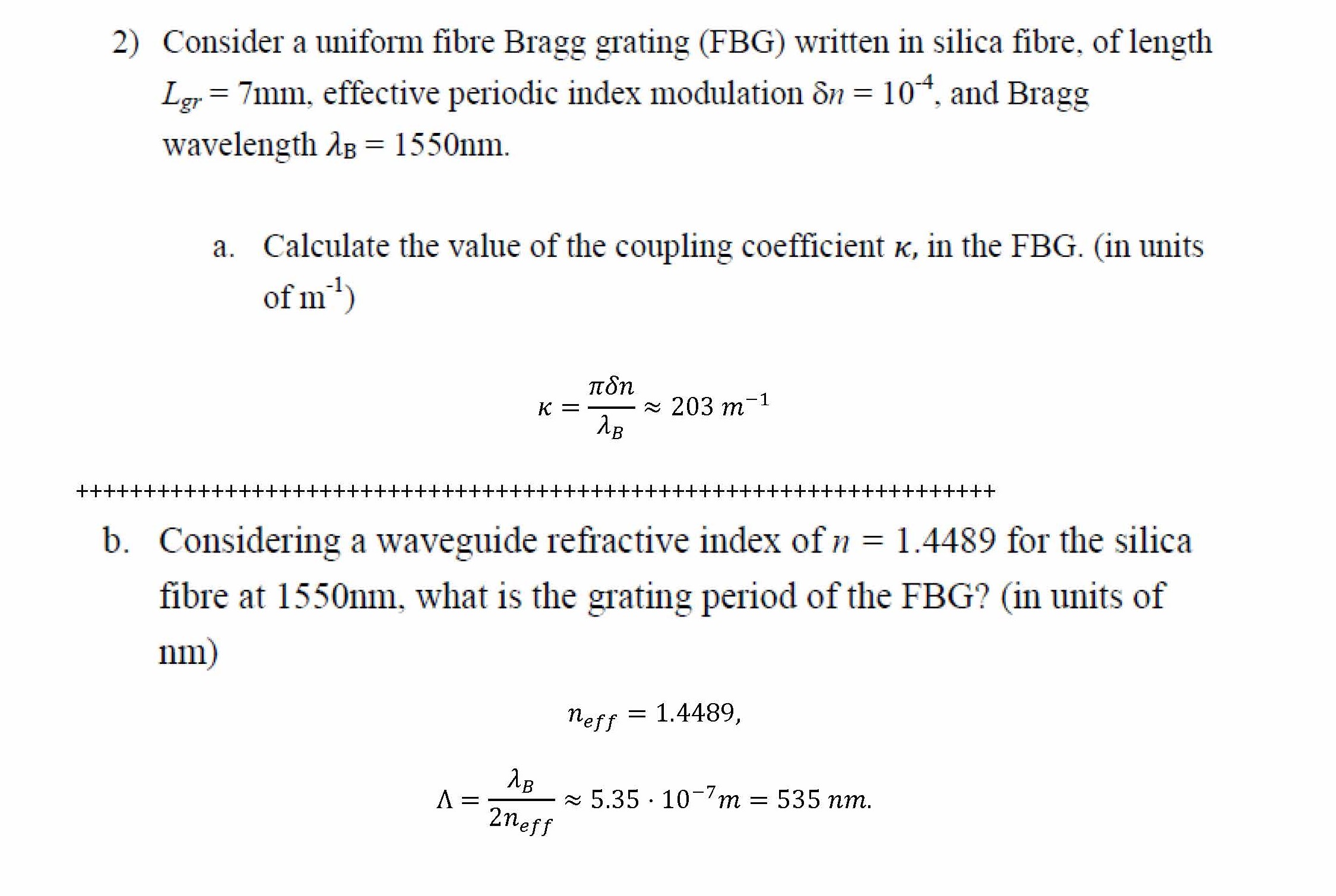 2) Consider a uniform fibre Bragg grating (FBG) written in silica f...