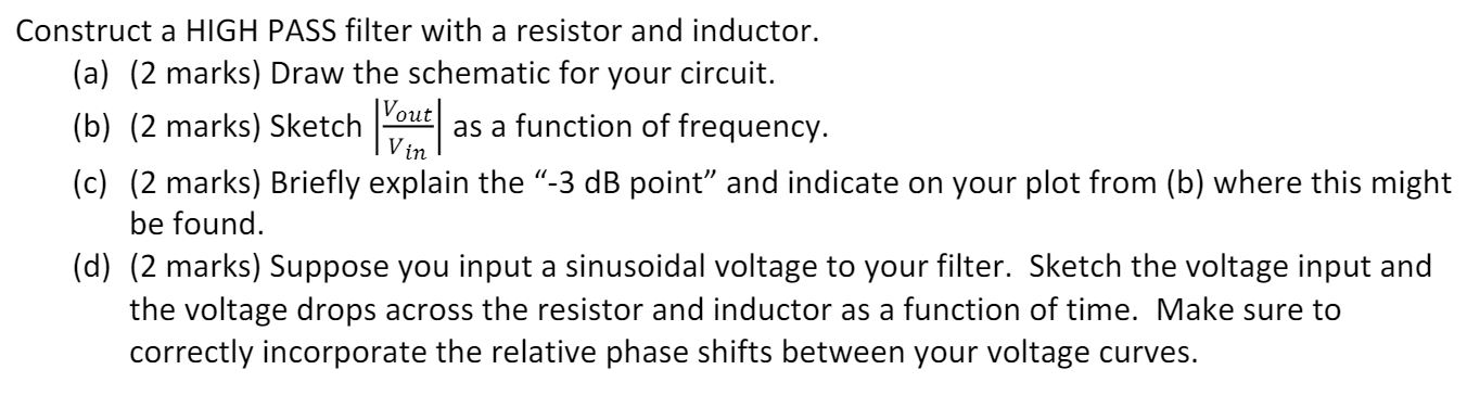 Construct a HIGH PASS filter with a resistor and inductor. (a) (2 ...