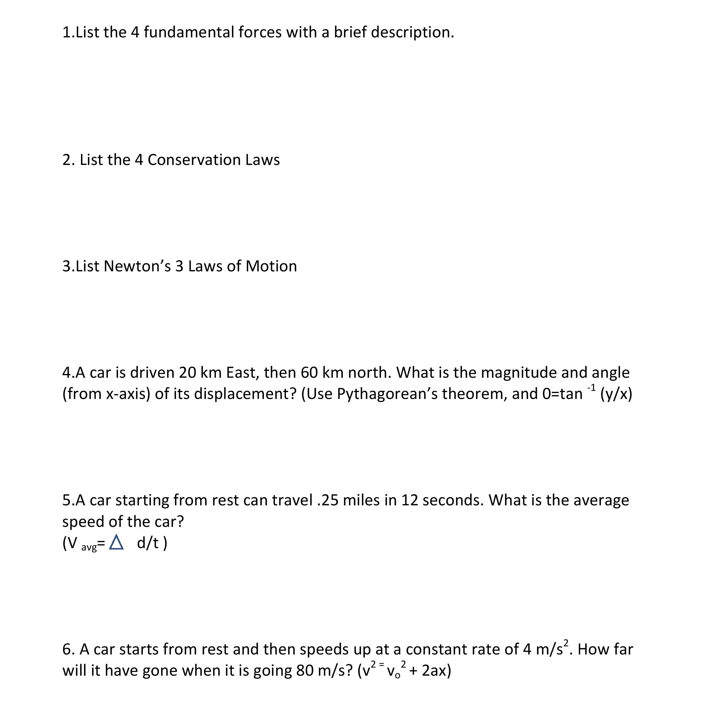 1. List the 4 fundamental forces with a brief description. 2. List...