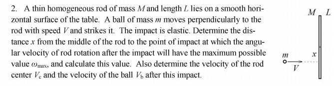 2. A thin homogeneous rod of mass M and length L lies on a smooth h...