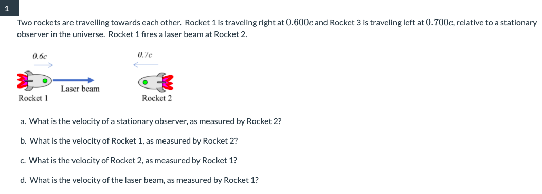 1 Two rockets are travelling towards each other. Rocket 1 is trave...