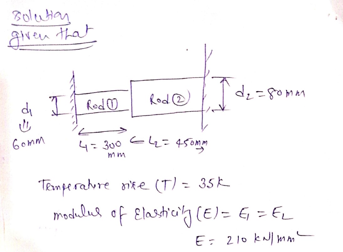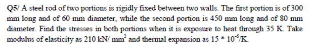 Q5/ A steel rod of two portions is rigidly fixed between two walls....