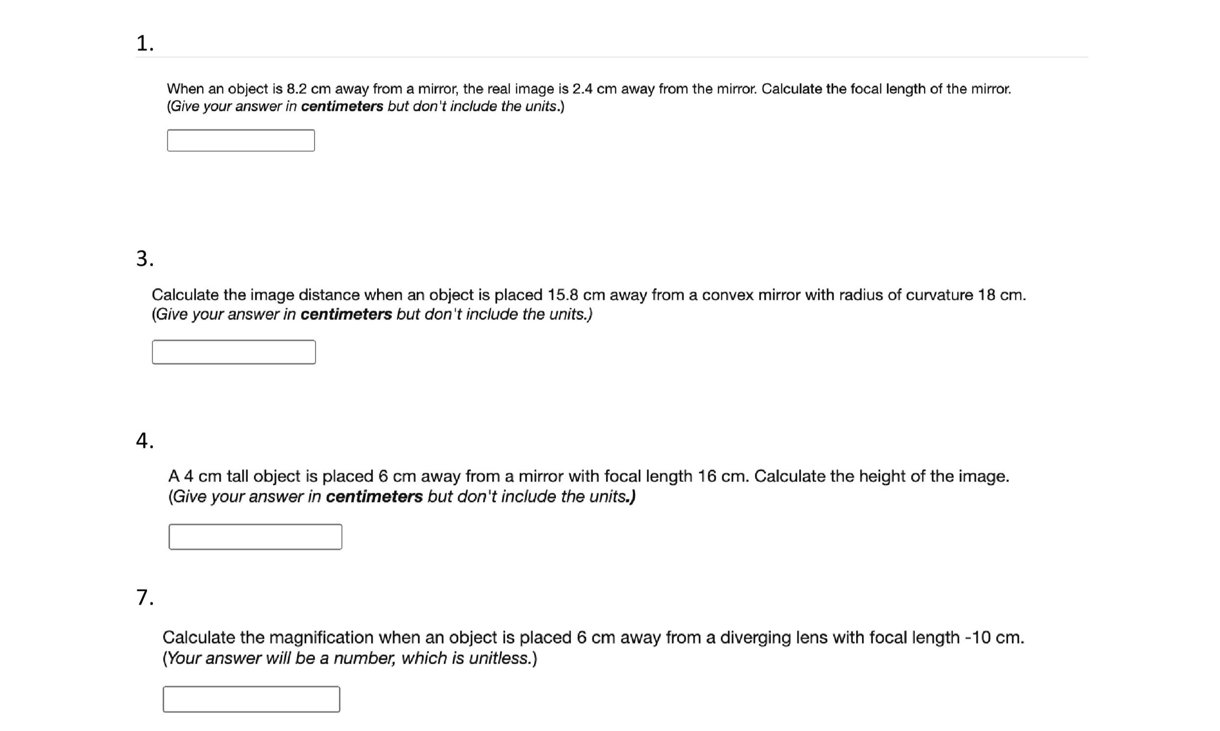 1. When an object is 8.2 cm away from a mirror, the real image is...
