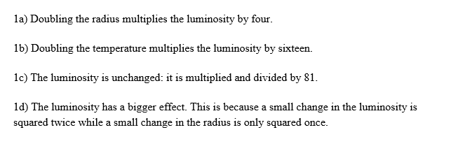 1.) The Luminosity of a star depends on two quantities, its radius ...