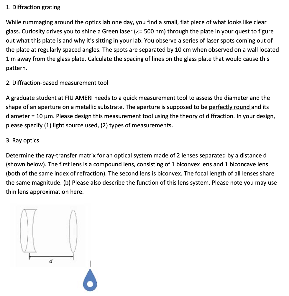 1. Diffraction grating While rummaging around the optics lab one d...