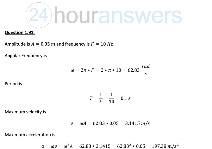 1.91 A harmonic motion has an amplitude of 0.05 m and a frequency o...
