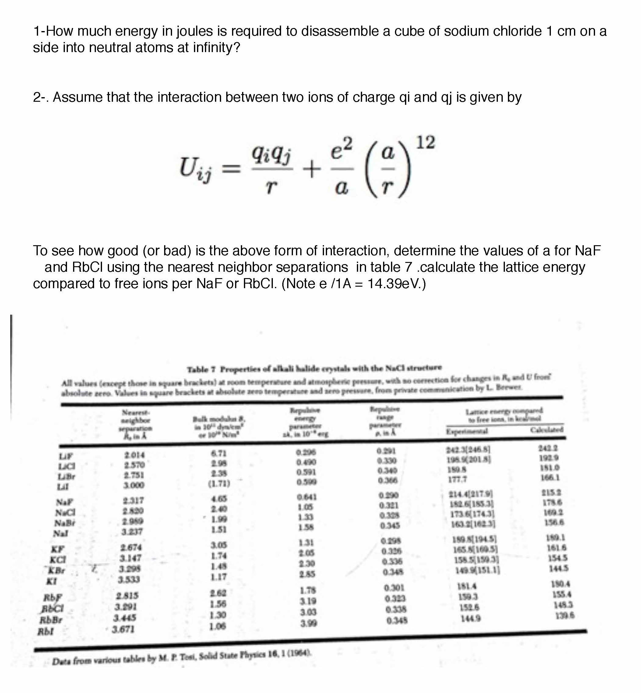 I-How much energy in joules is required to disassemble a cube of so...