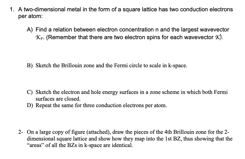 1. A two-dimensional metal in the form of a square lattice has two ...