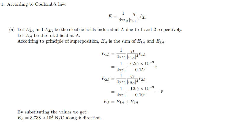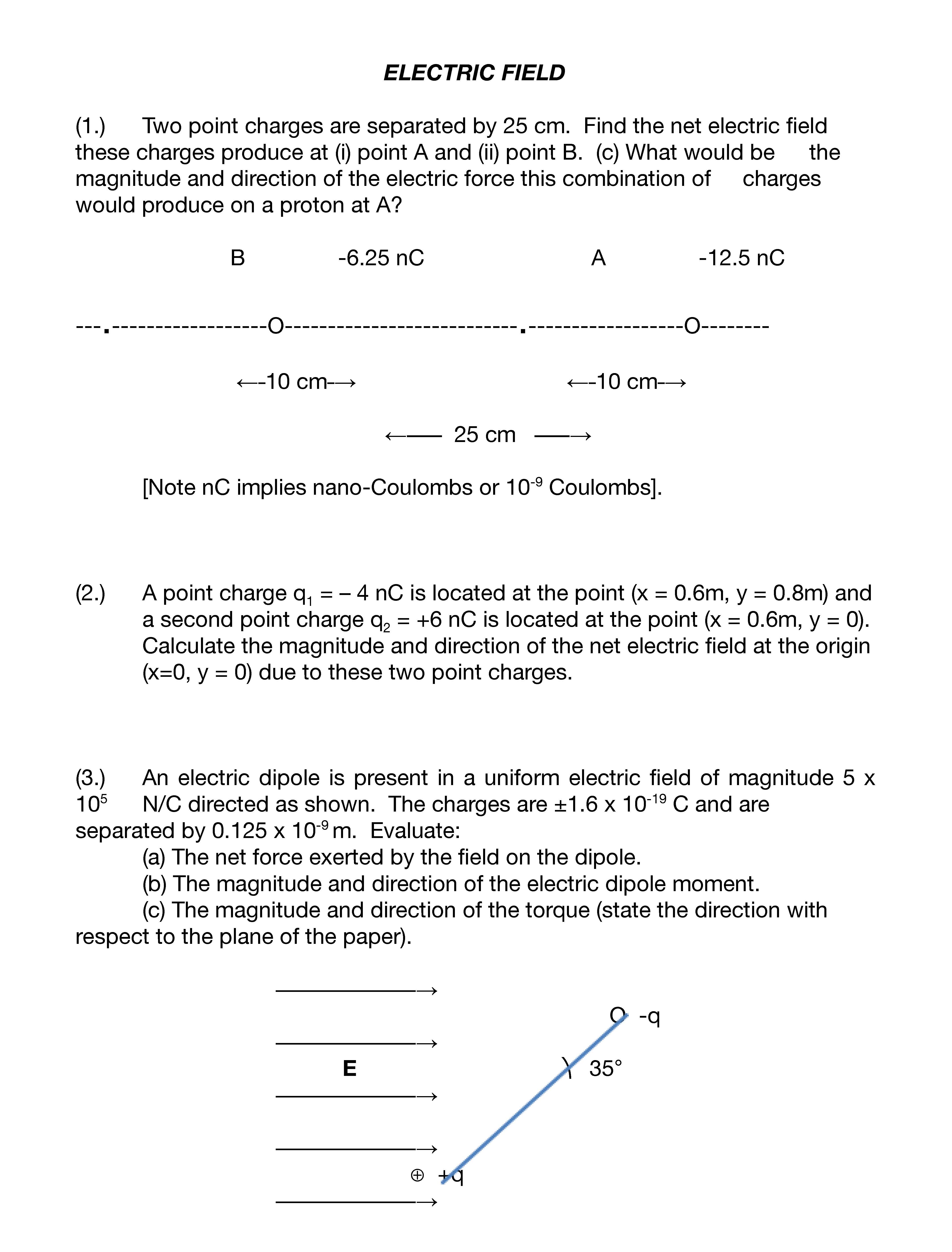 ELECTRIC FIELD (1.) Two point charges are separated by 25 cm. Find...