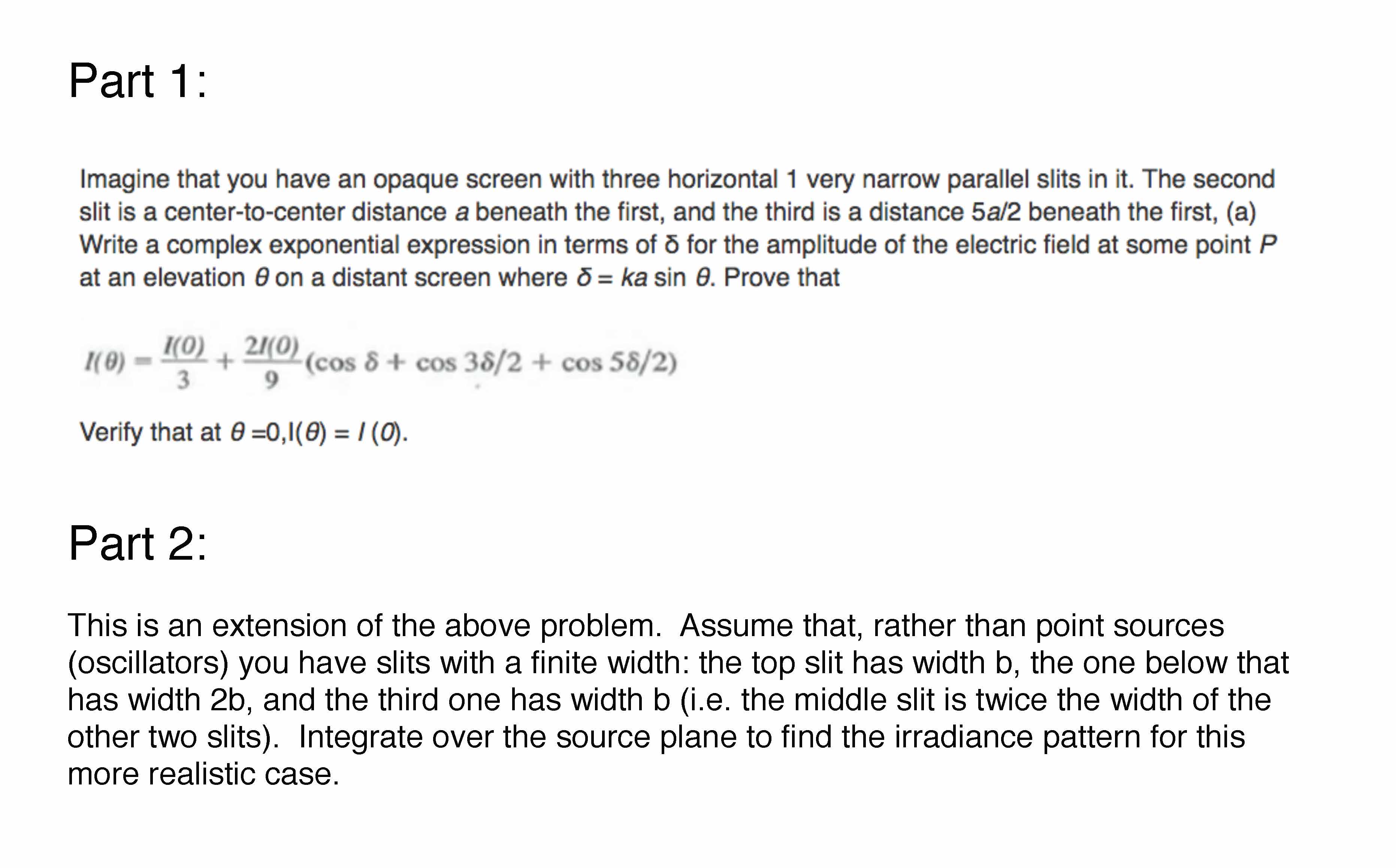 Part 1: Imagine that you have an opaque screen with three horizont...