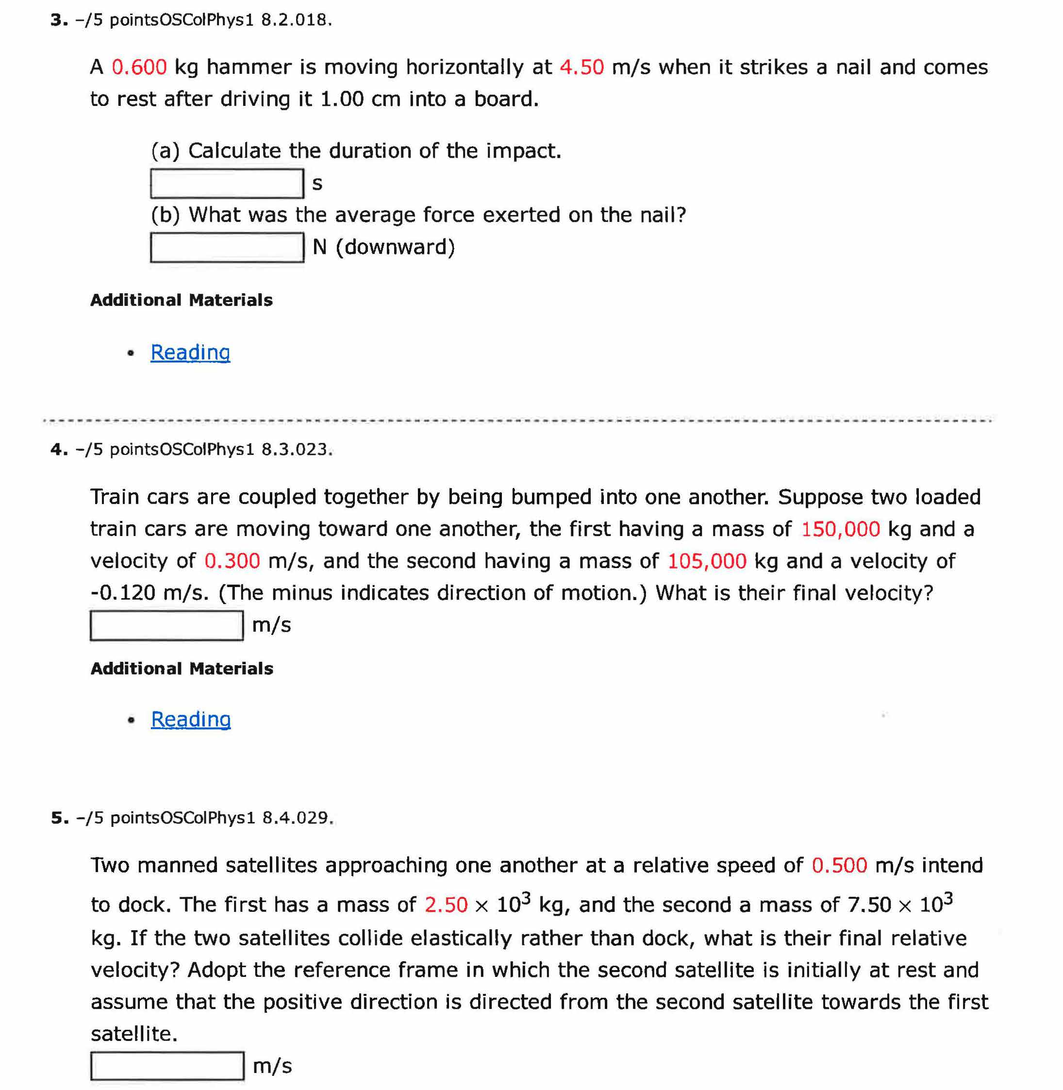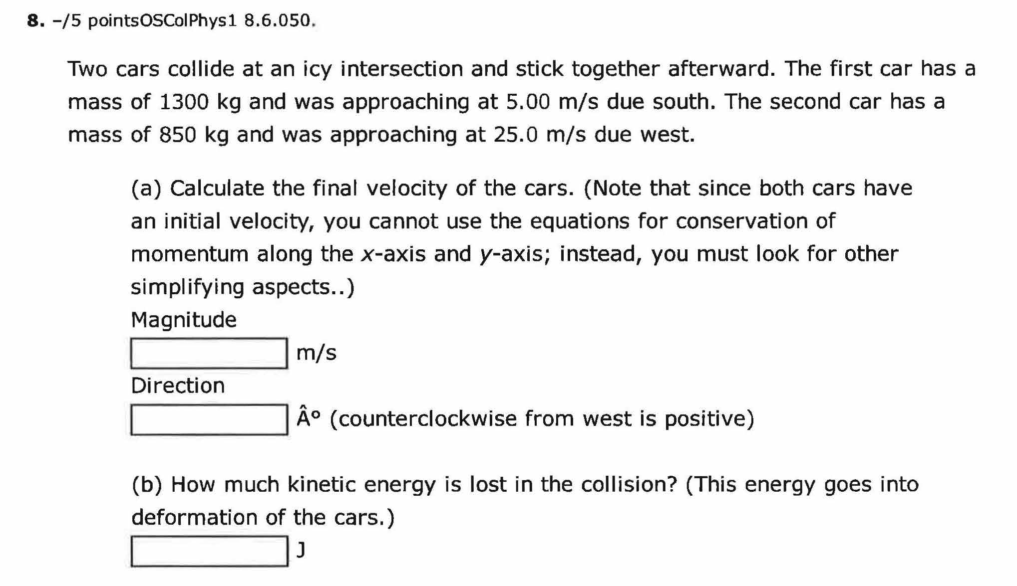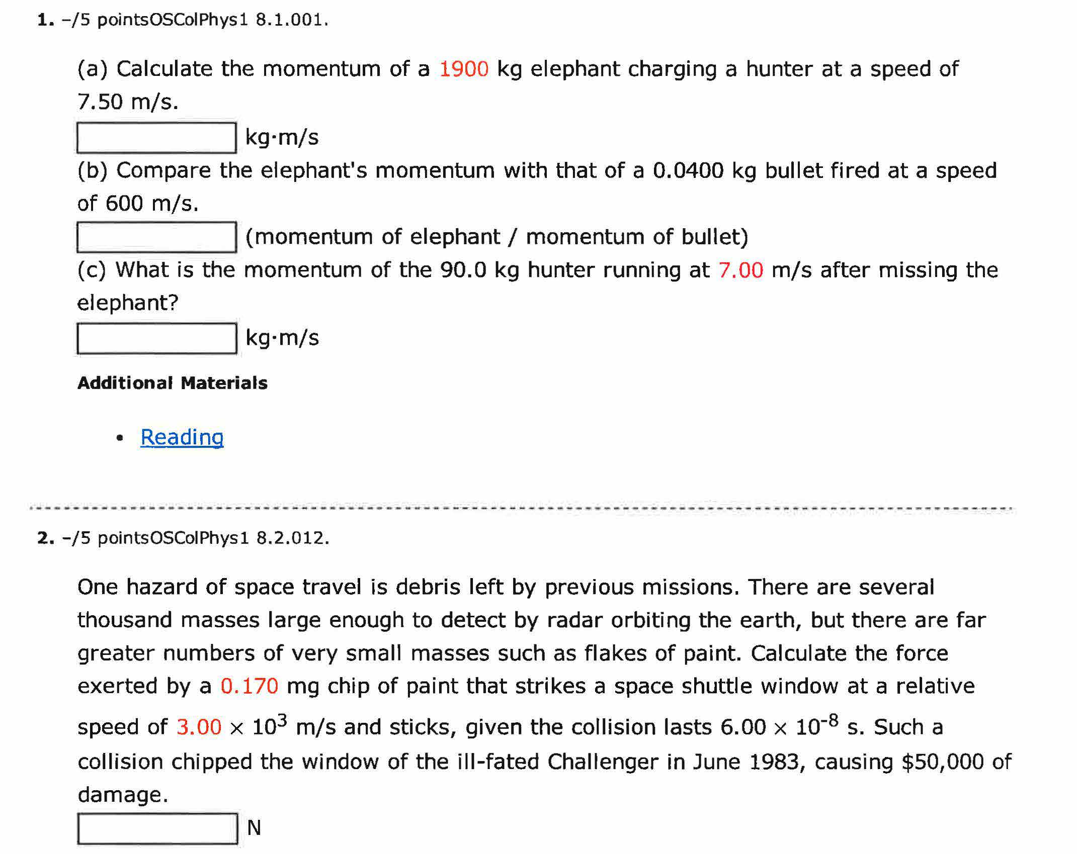 1. -/5 pointsOSColPhysl 8.1.001. (a) Calculate the momentum of a 1...