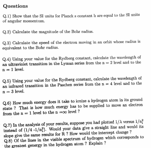 Questions Q.1) Show that the SI units for Planck S constant h are...