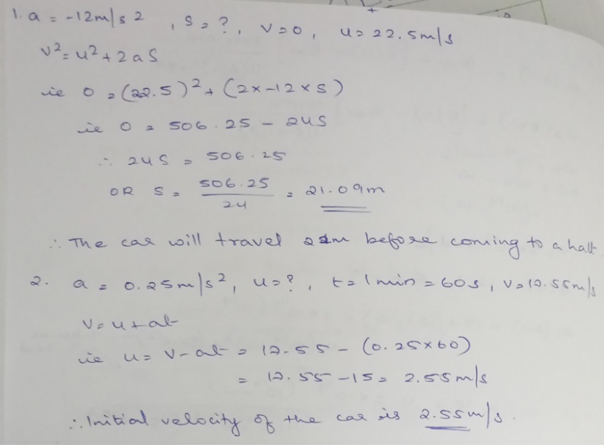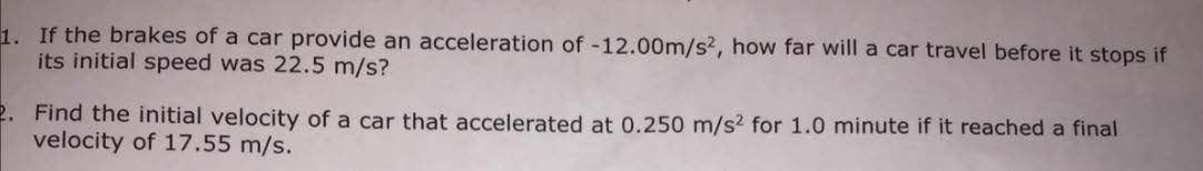 1. If the brakes of a car provide an acceleration of -12.00m/s2, ho...