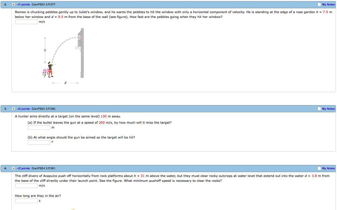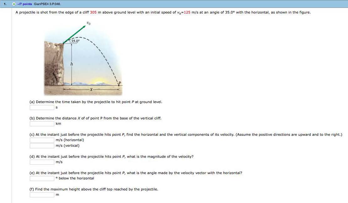 1. -17 points GianPSE4 3.P.046. A projectile is shot from the edg...