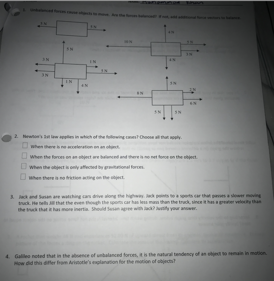 1. Unbalanced forces cause objects to move. Are the forces balance...