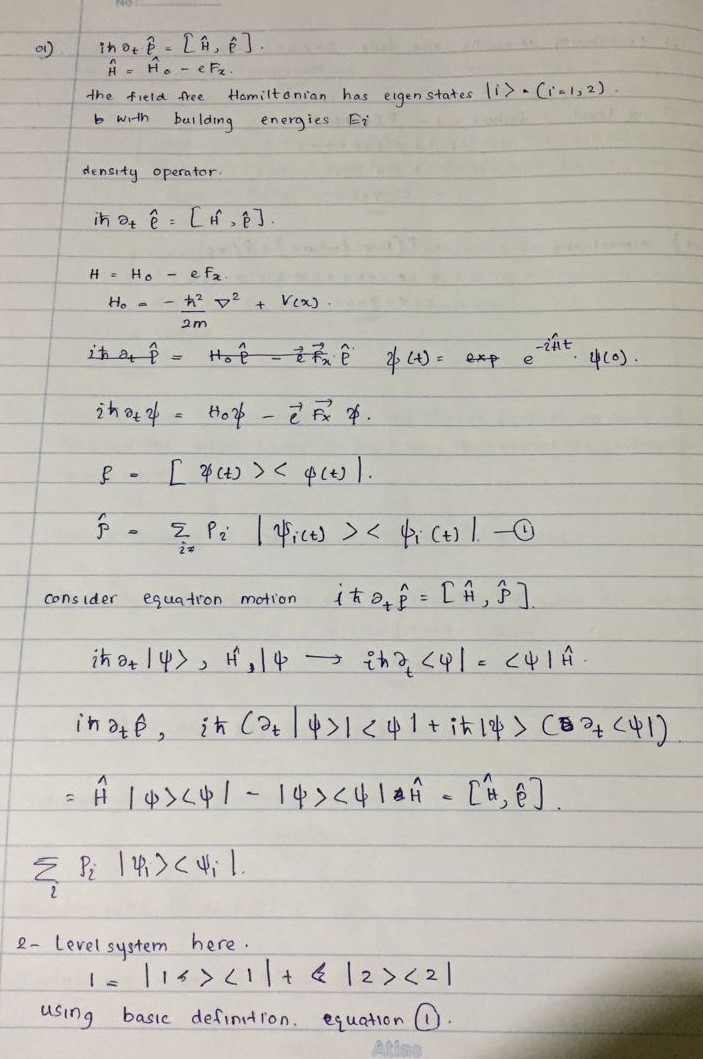 1. (5 points) The equation of motion of the density operator is giv...