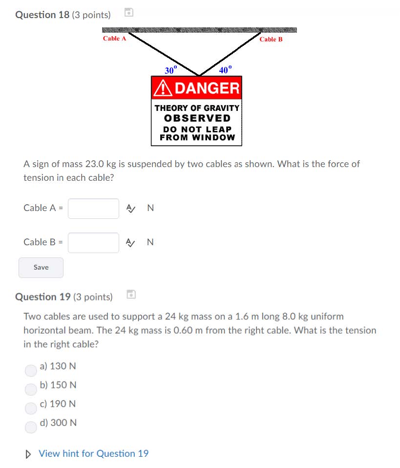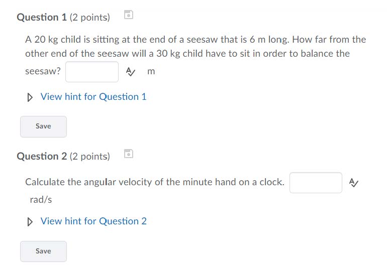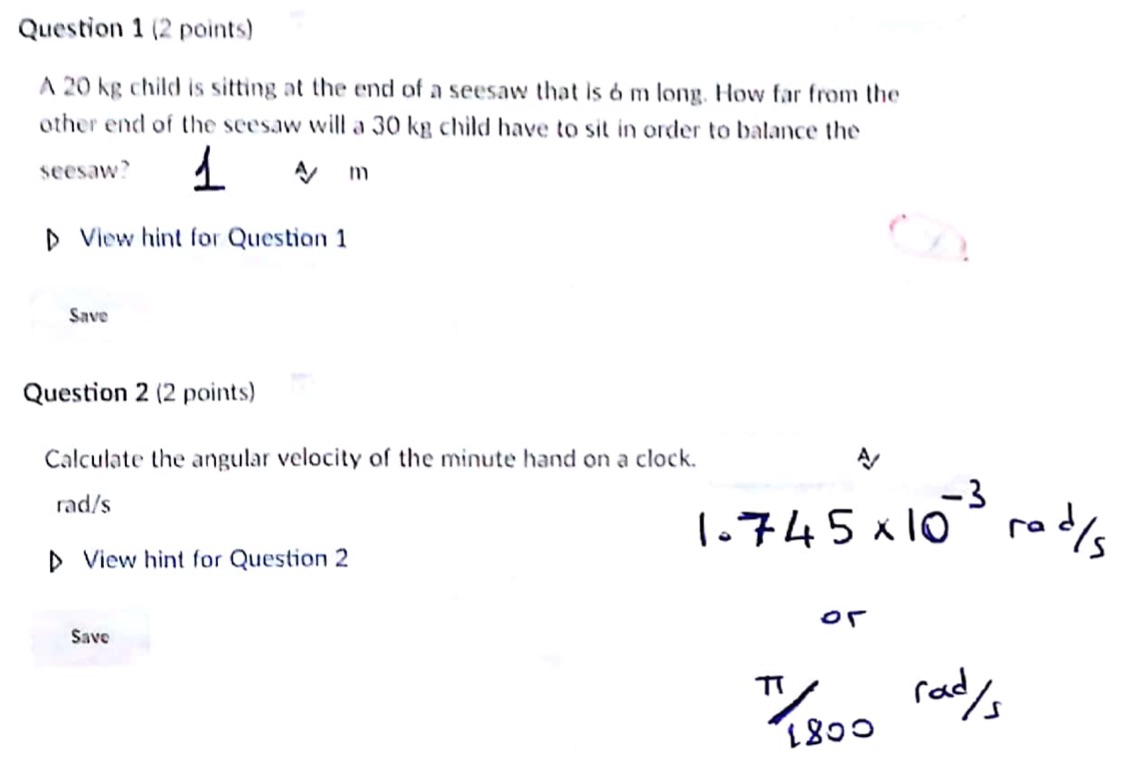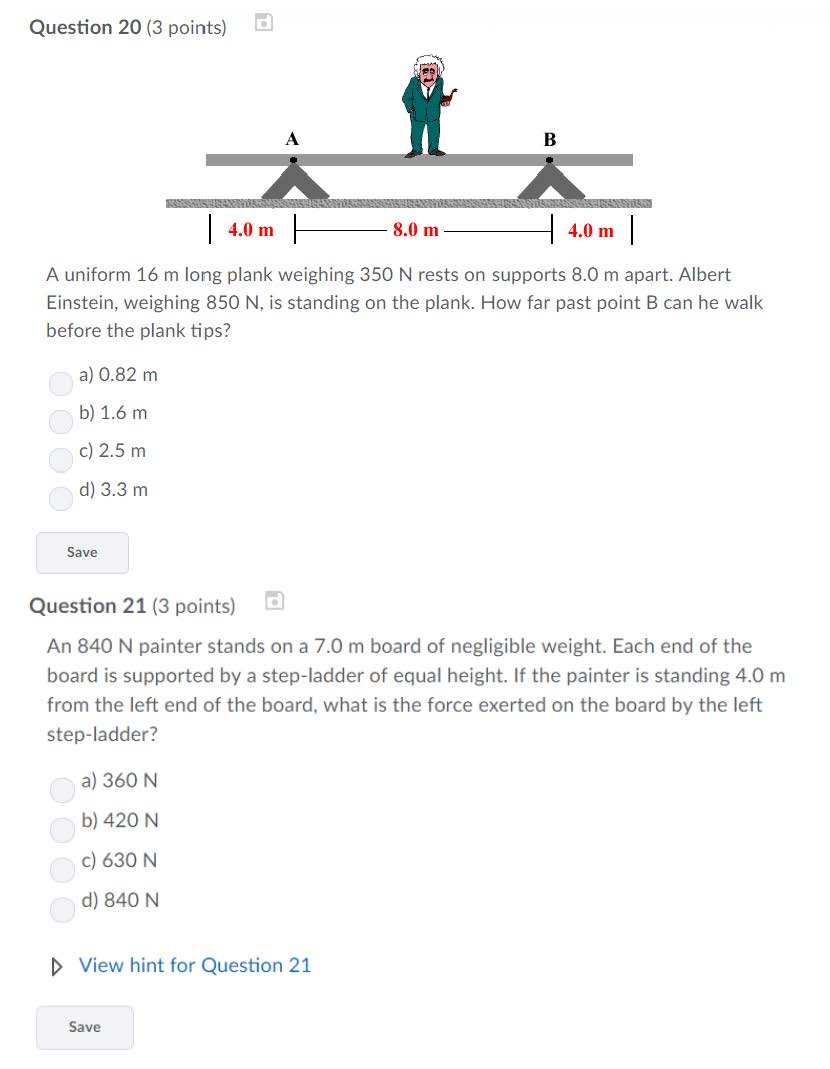 Question 1 (2 points) A 20 kg child is sitting at the end of a see...