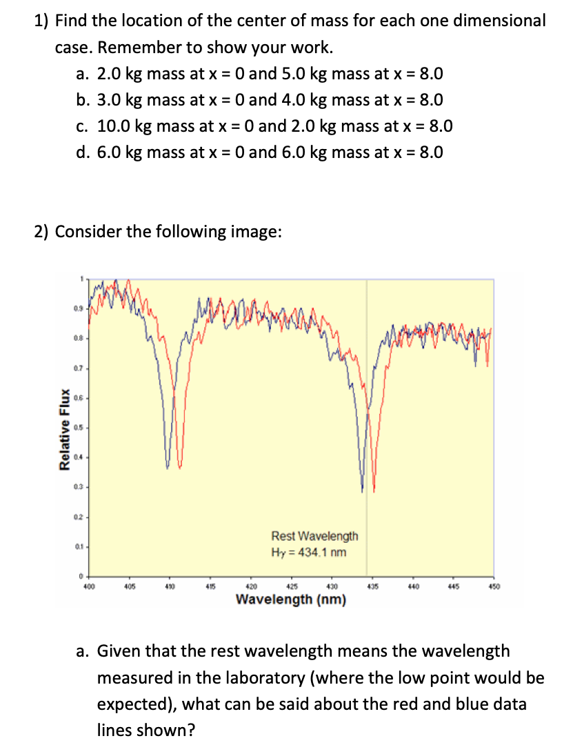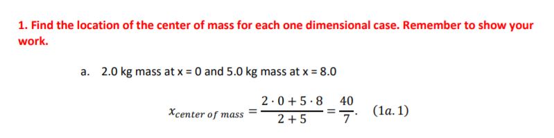 1) Find the location of the center of mass for each one dimensional...