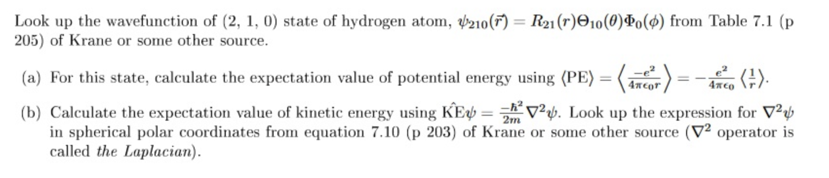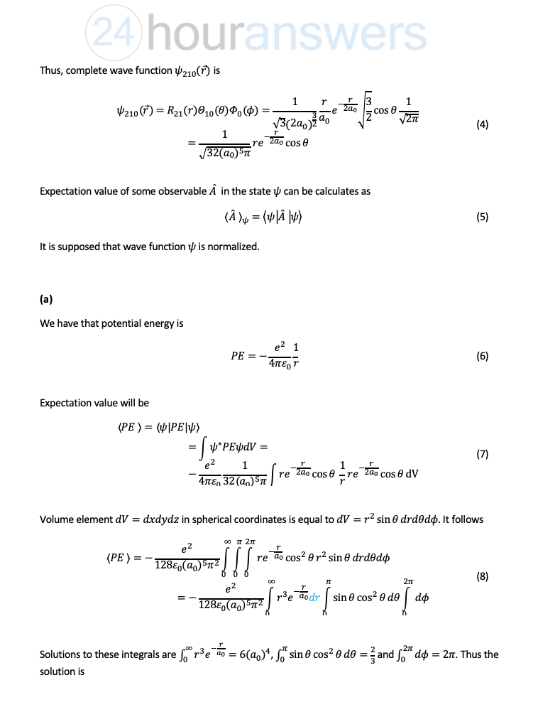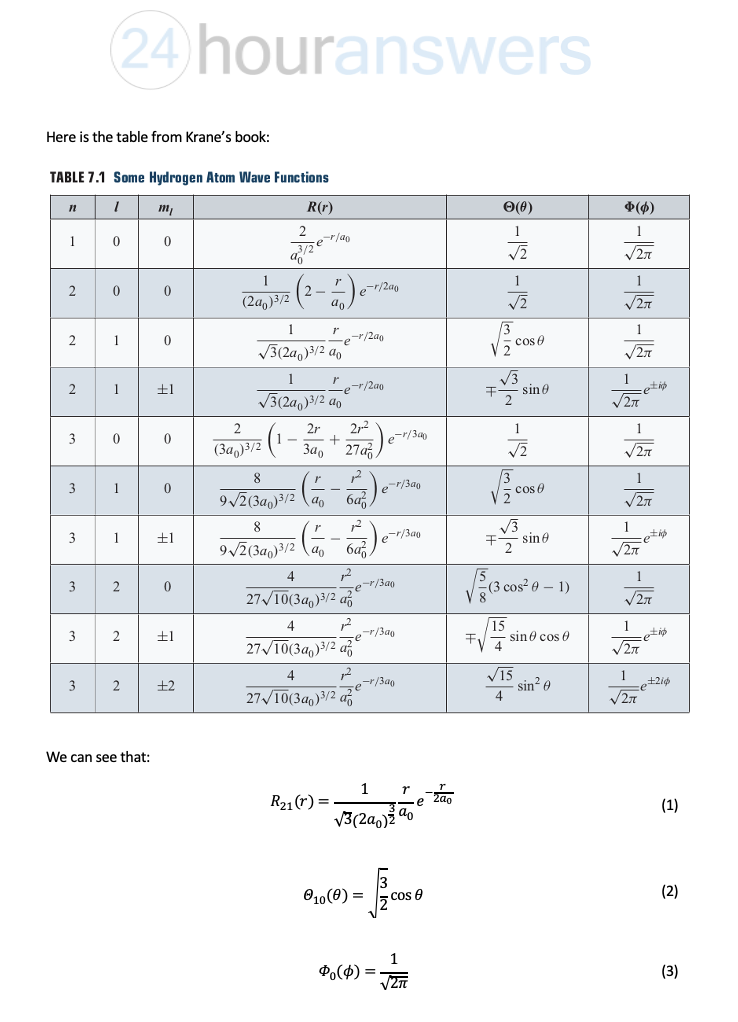 Look up the wavefunction of (2, 1, 0) state of hydrogen atom, 4/210...