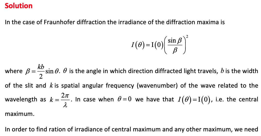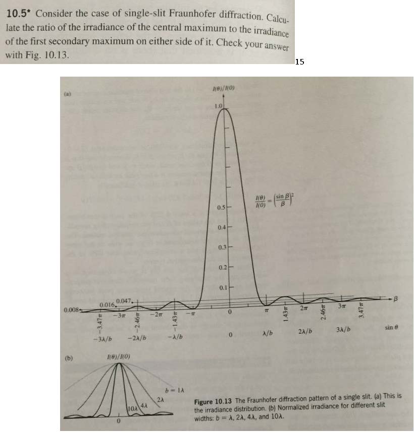 0.5* Consider the case of single-slit Fraunhofer diffraction. Calcu...