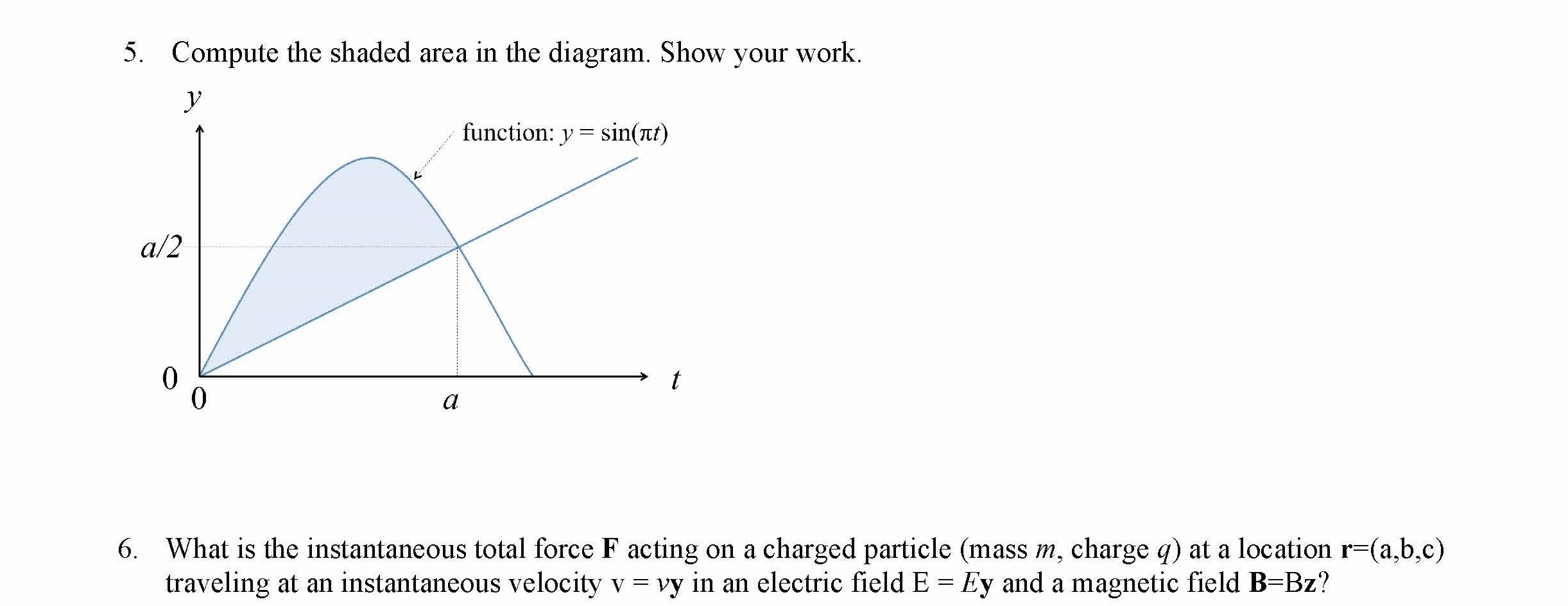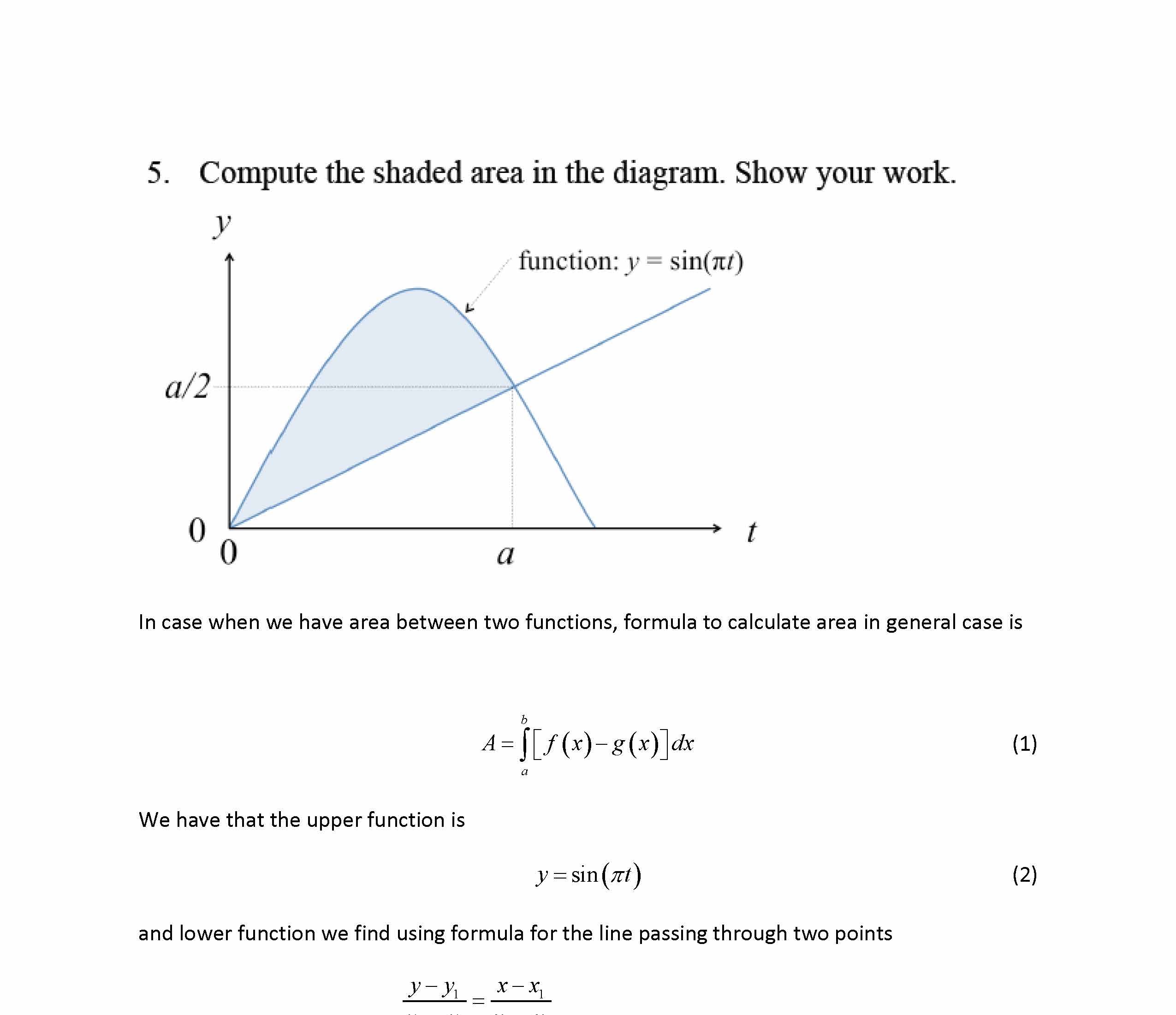 5. Compute the shaded area in the diagram. Show your work. y func...