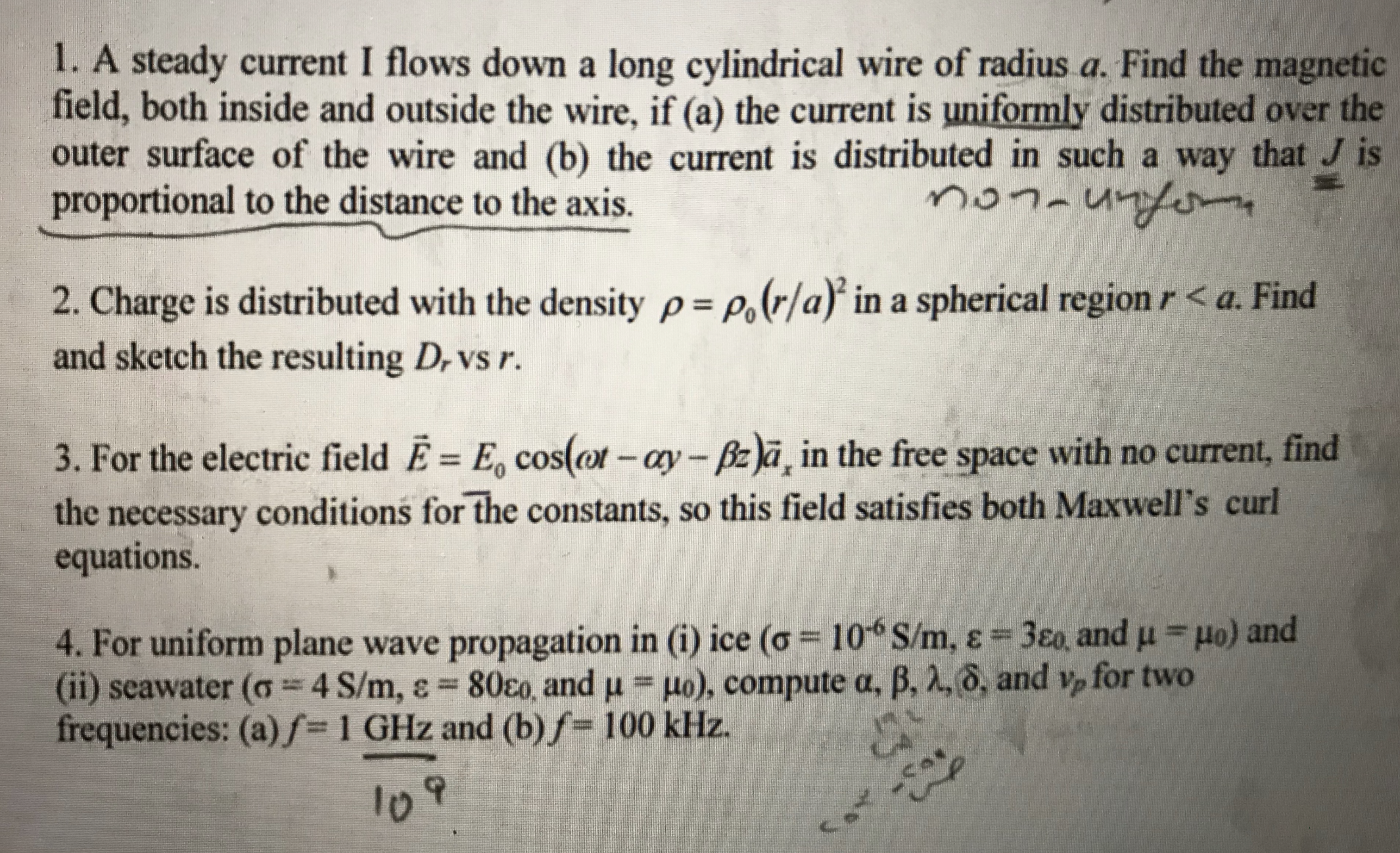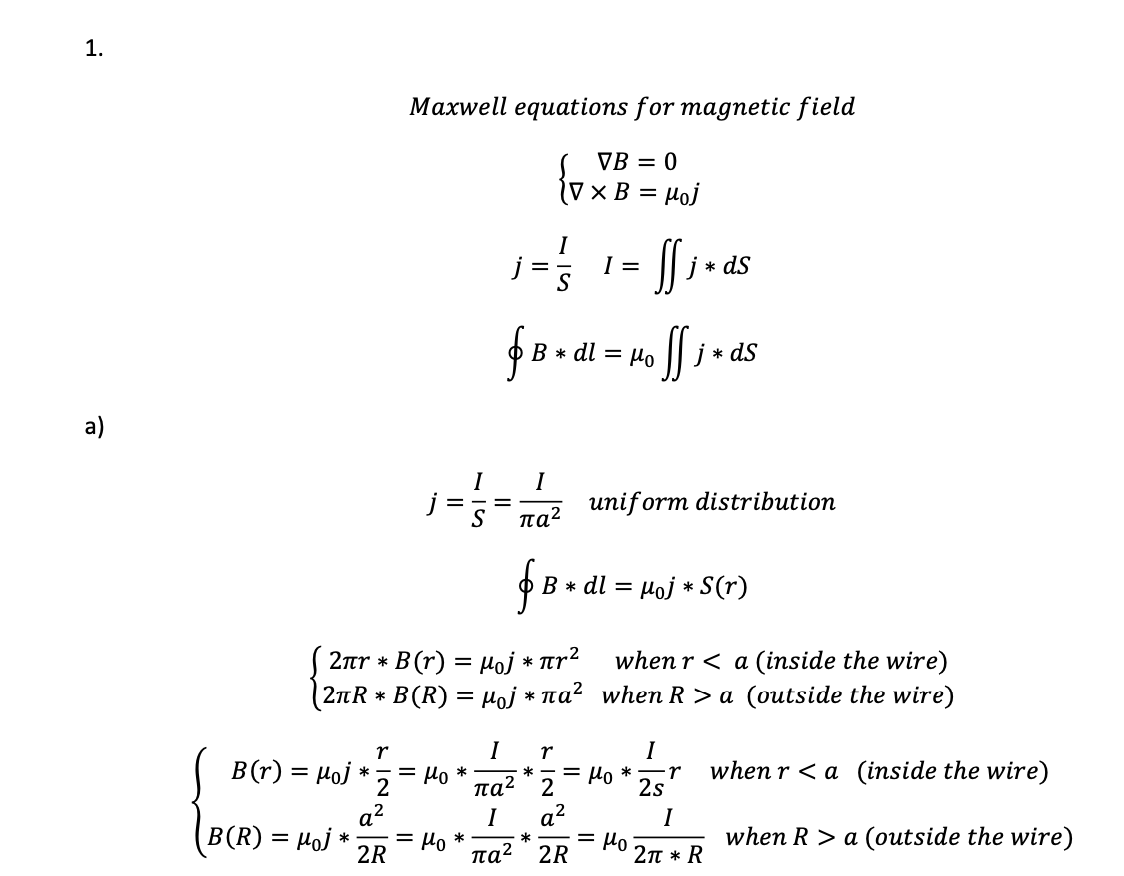 1. A steady current I flows down a long cylindrical wire of radius ...