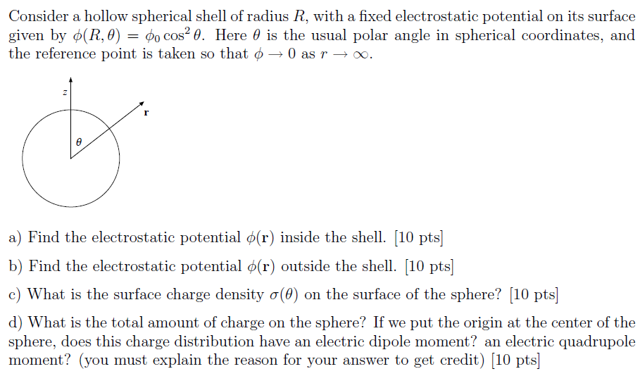 Consider a hollow spherical shell of radius R, with a fixed electro...
