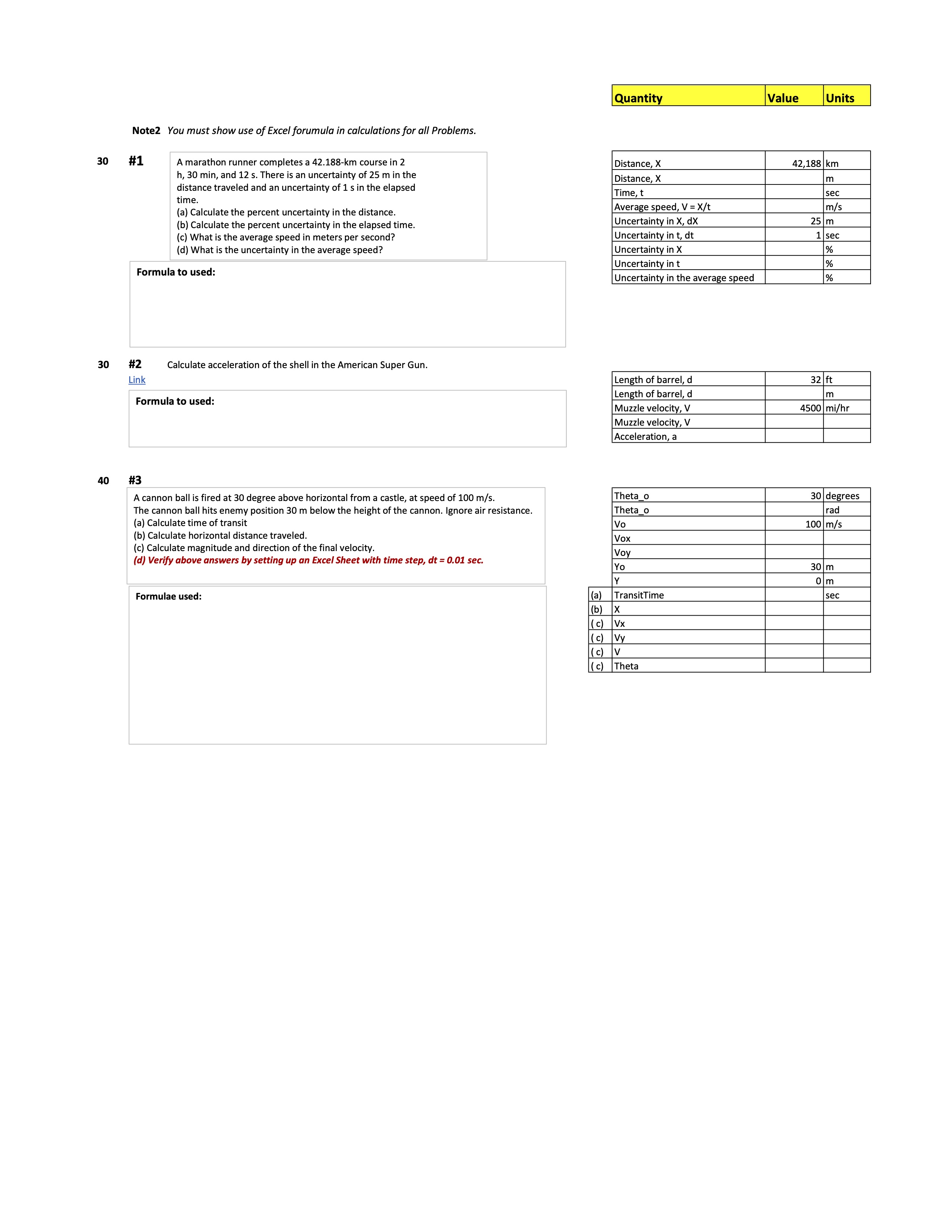 Note2 You must show use of Excel forumula in calculations for all P...