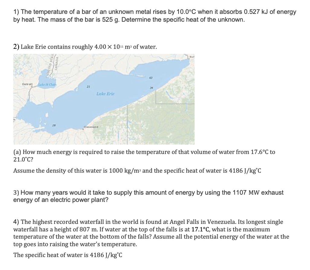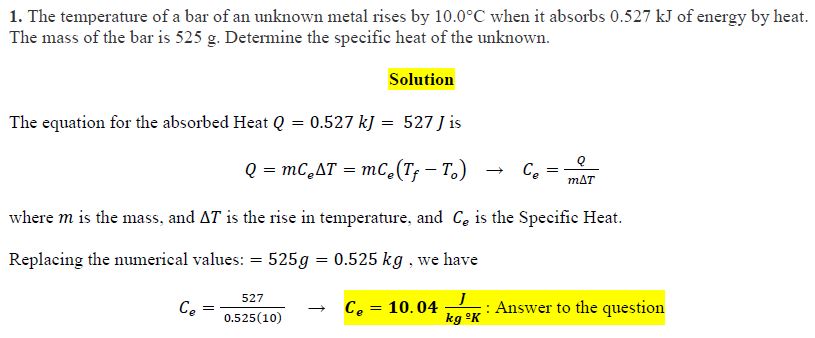 1) The temperature of a bar of an unknown metal rises by 10.0°C wh...