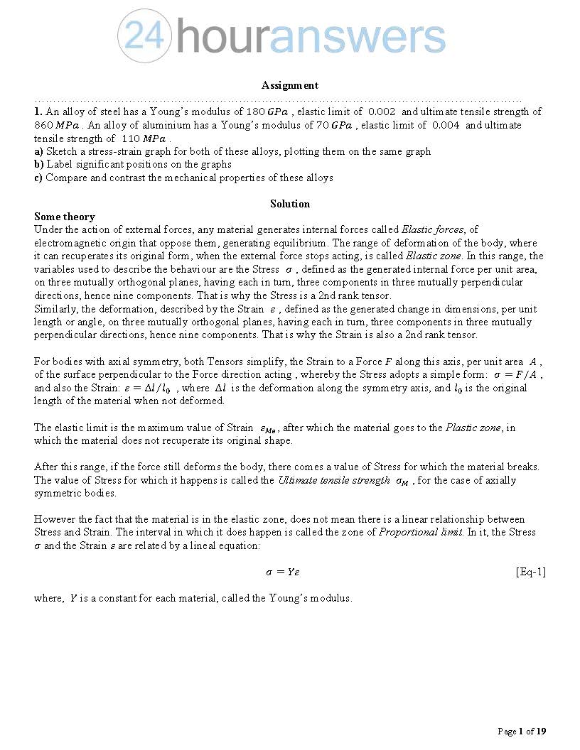 An alloy of steel has a Young's modulus of 180GPa, elastic limit of...