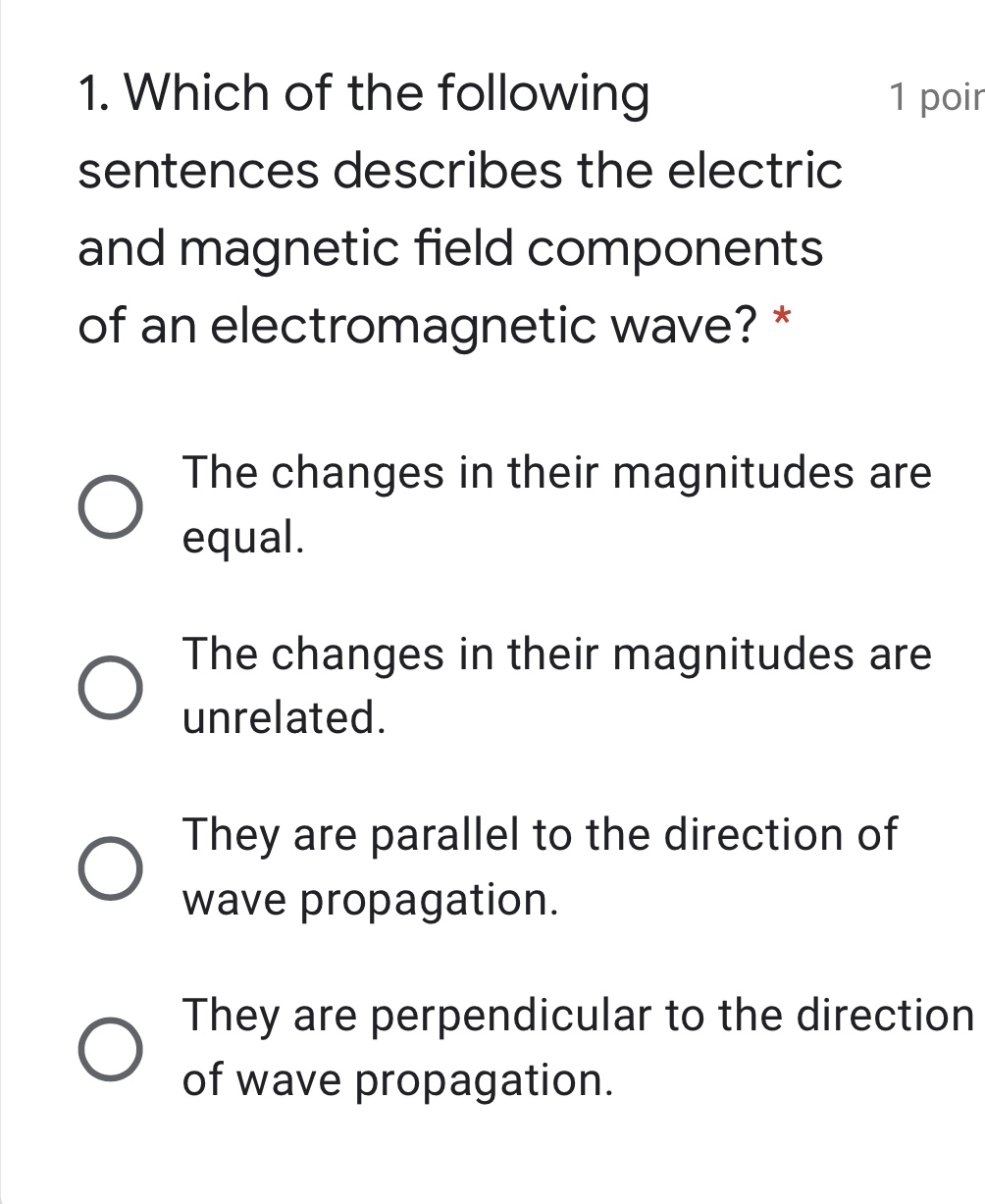 1. Which of the following sentences describes the electric and ma...
