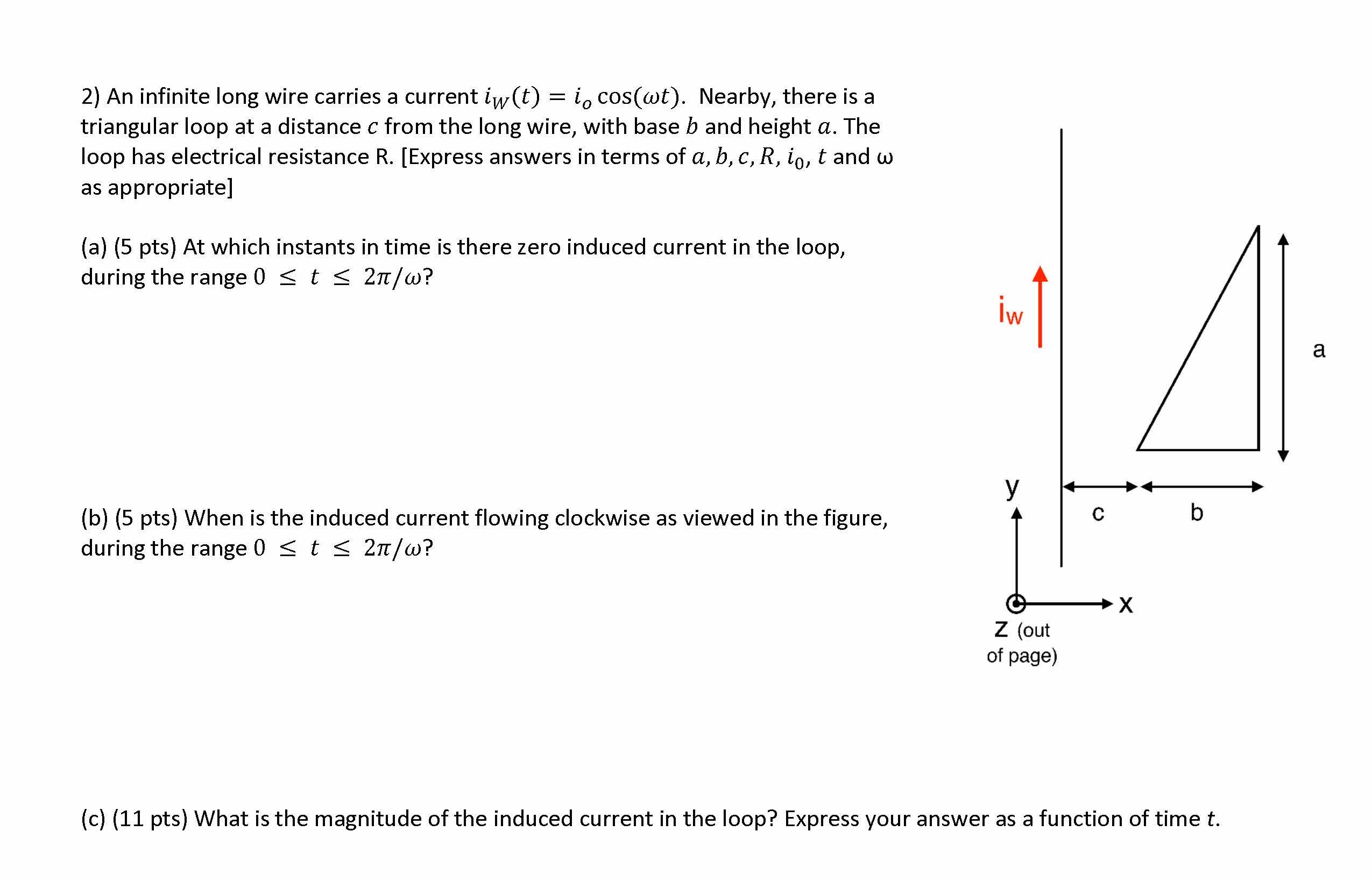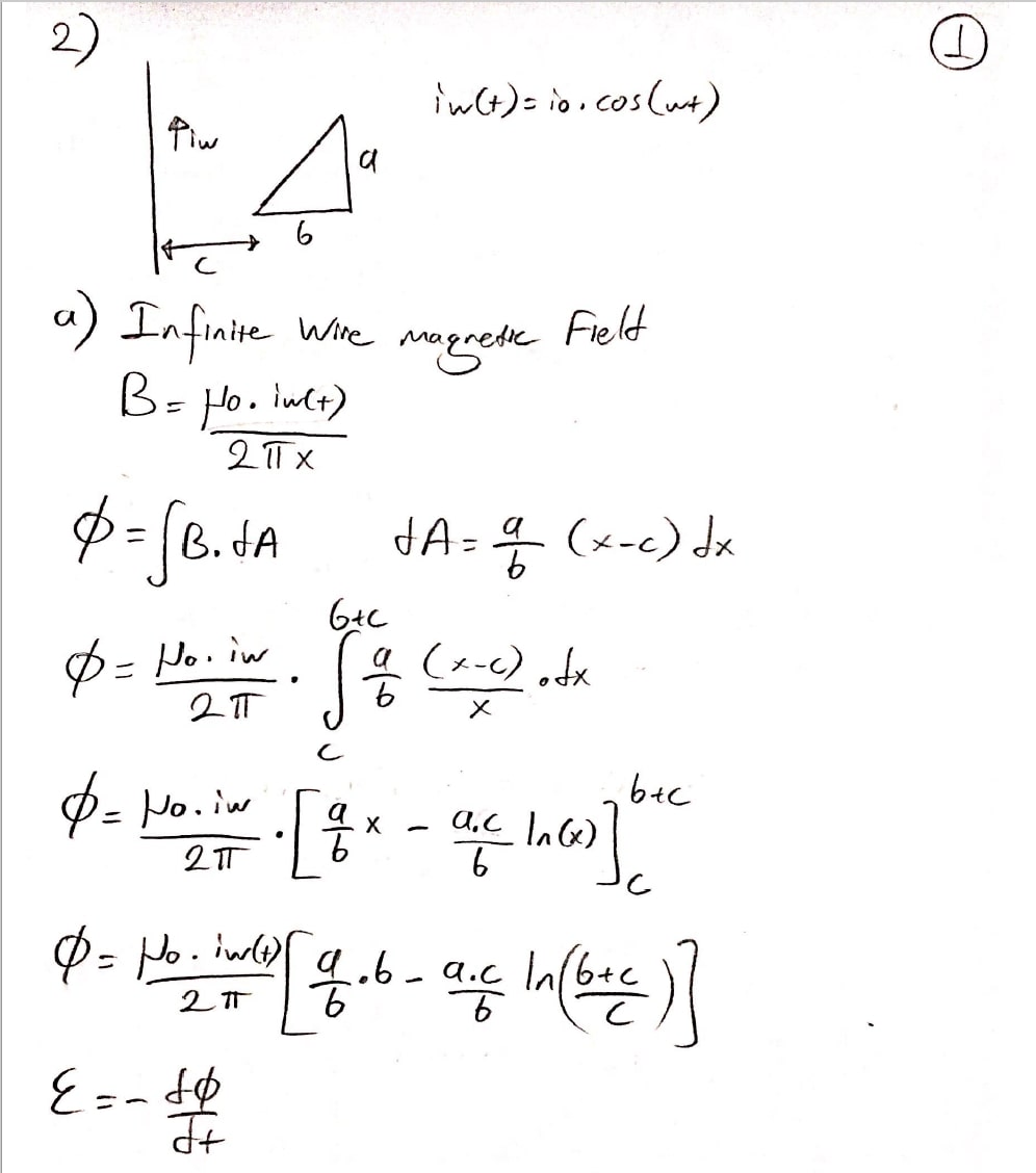 2) An infinite long wire carries a current ð‘–ô€¯ôˆºð‘¡ôˆ» ô€µ...